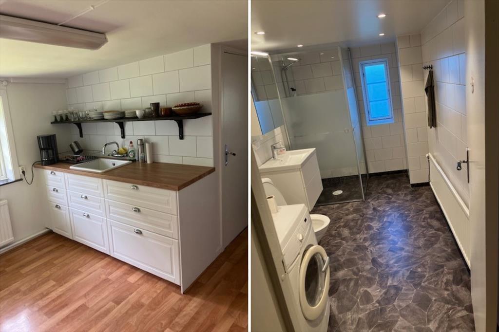 Huset tilbyder et generøst boligareal på 117 m² og har komfortabel plads til 6 voksne og 2 børn op til 11 år. I stuen kan I slappe af i sofaerne foran brændeovnen. Køkkenet er fuldt udstyret med ovn, elektrisk komfur, køleskab/fryser, kaffemaskine og elkedel – alt hvad I behøver for at tilberede og servere hverdagens måltider. Det moderniserede badeværelse har toilet, bruser og vaskemaskine. Der er ingen tørretumbler, men der er et tørrestativ til tøj. Sovepladserne er fordelt på et soveværelse med dobbeltseng, et andet soveværelse med to enkeltsenge og et tredje soveværelse med køjeseng. Derudover kan en af sofaerne i stuen laves om til en sovesofa til to børn. Huset opvarmes af en varmepumpe og brændeovnen.