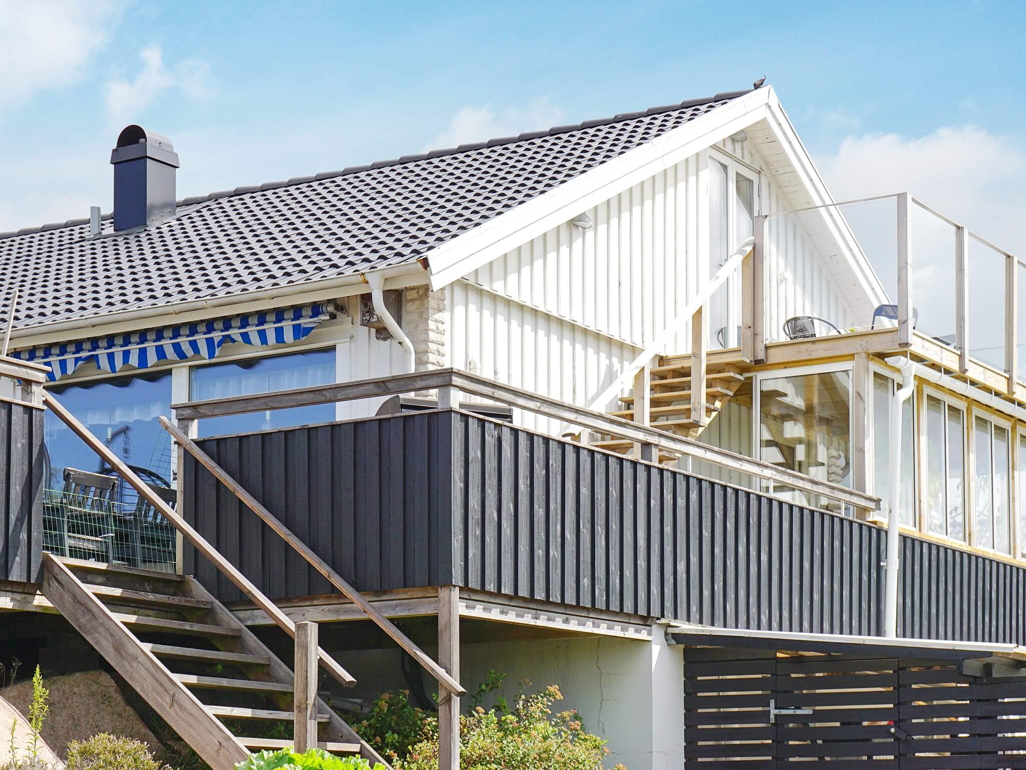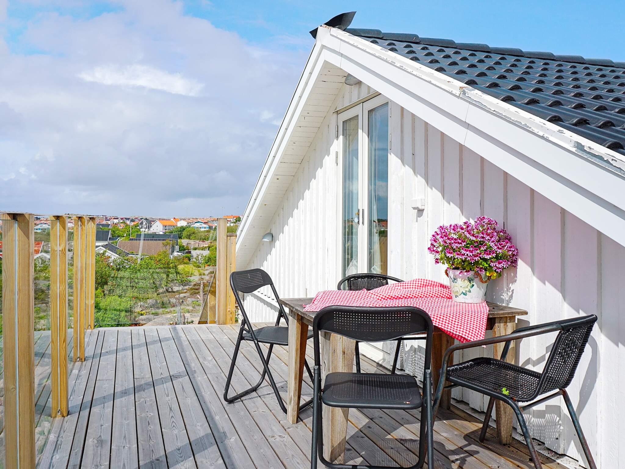 Die ebenerdige Wohnung befindet sich im zweiten Obergeschoss mit angeschlossenem Balkonbereich und ist über eine Treppe erreichbar, die zum sonnigen Südbalkon führt. Die Wohnung liegt hoch über der Umgebung und bietet einen freien Blick über weite Teile von Kungshamn und auch ein Stück Meer draußen. Hier können Sie die Morgensonne beim Frühstück genießen oder die Abendsonne genießen, während Sie über die Ereignisse des Tages sprechen.