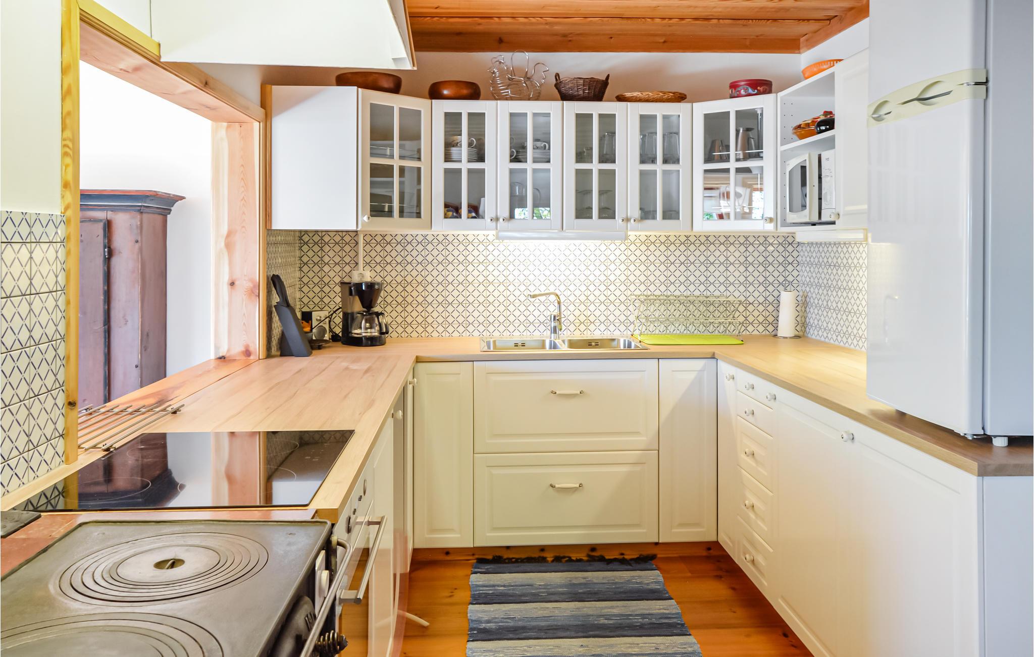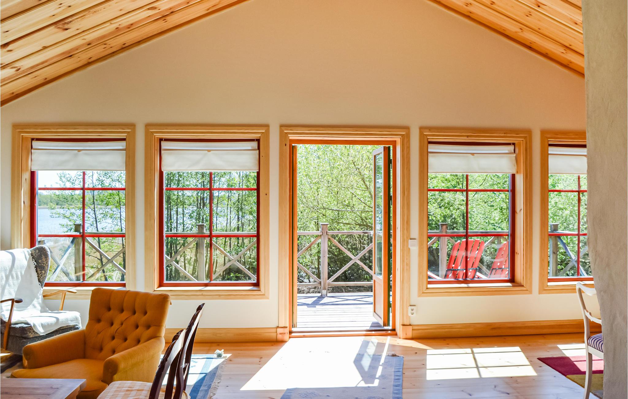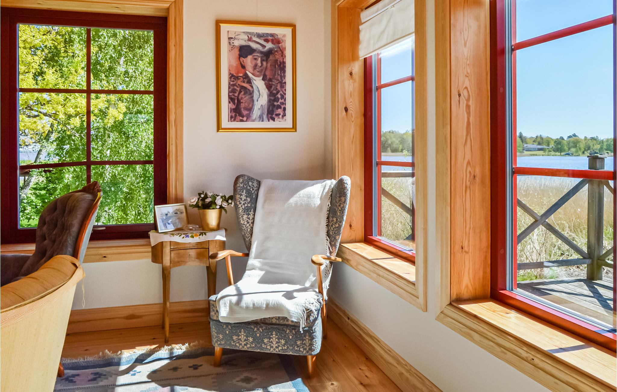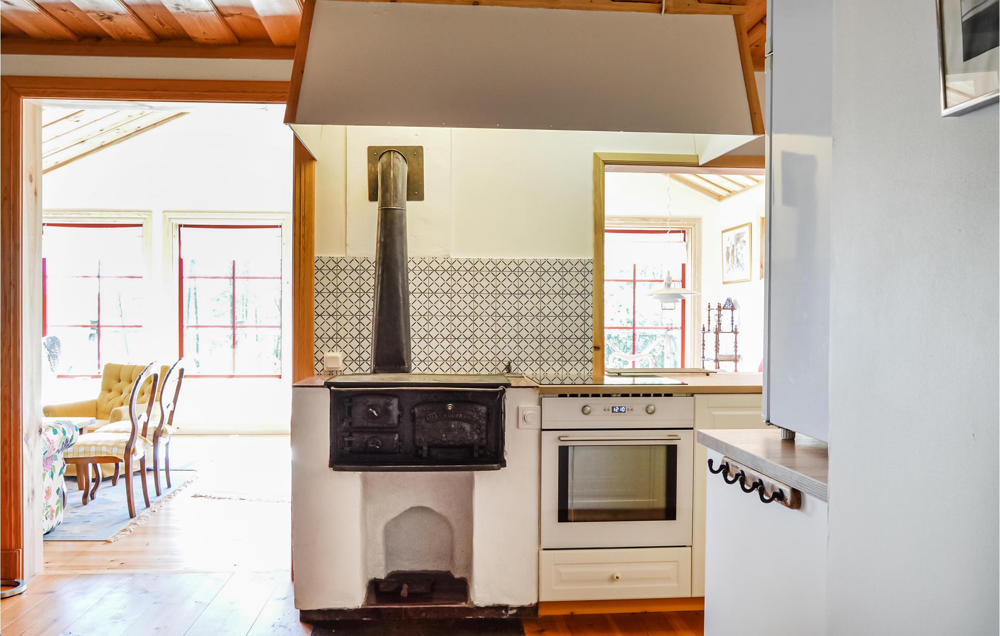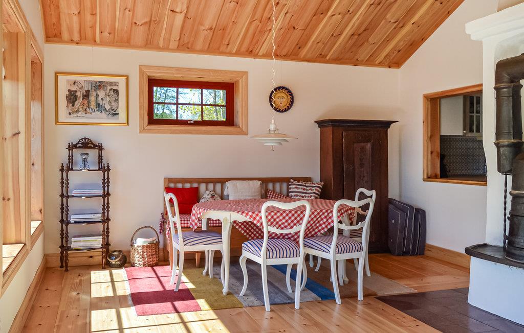 Gleich nebenan liegt das Naturschutzgebiet Askholmen mit Eichenhängen, Wiesen und Wanderwegen. Das Haus verfügt über alle Annehmlichkeiten und 6 Betten, von denen sich eines im Wohnzimmer befindet. Große Terrasse mit Blick auf das Wasser, Esszimmer mit Kamin für angenehme Abende und eine offene, moderne Küche mit Holzofen.