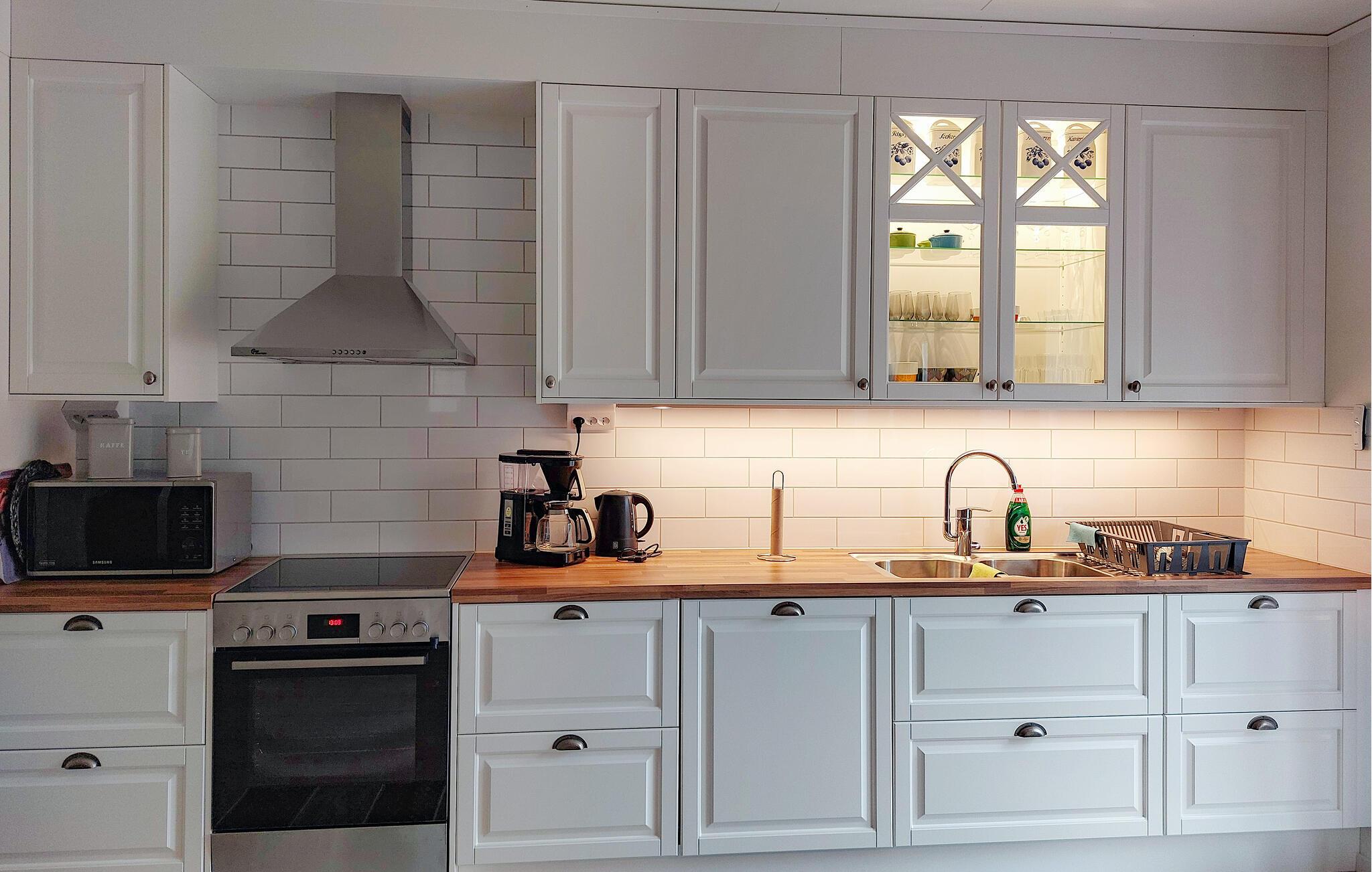 Verbringen Sie Ihren nächsten Urlaub in diesem Ferienhaus an der schwedischen Westküste. Das Haus liegt in ruhiger Umgebung und bietet Ihnen den idealen Ausgangspunkt für entspannte Tage und vielfältige Aktivitäten. Der helle Wohnbereich besticht mit gemütlichen Sofas, stilvollen Dekorationen und einer offenen Essküche. Entspannen Sie hier nach einem langen Tag oder genießen Sie ruhige Stunden mit der Familie oder Freunden. Kochen Sie gemeinsam in der Küche und nehmen Sie anschließend am großen Esstisch Platz und verbringen Sie gesellige Runden und lange Abende.