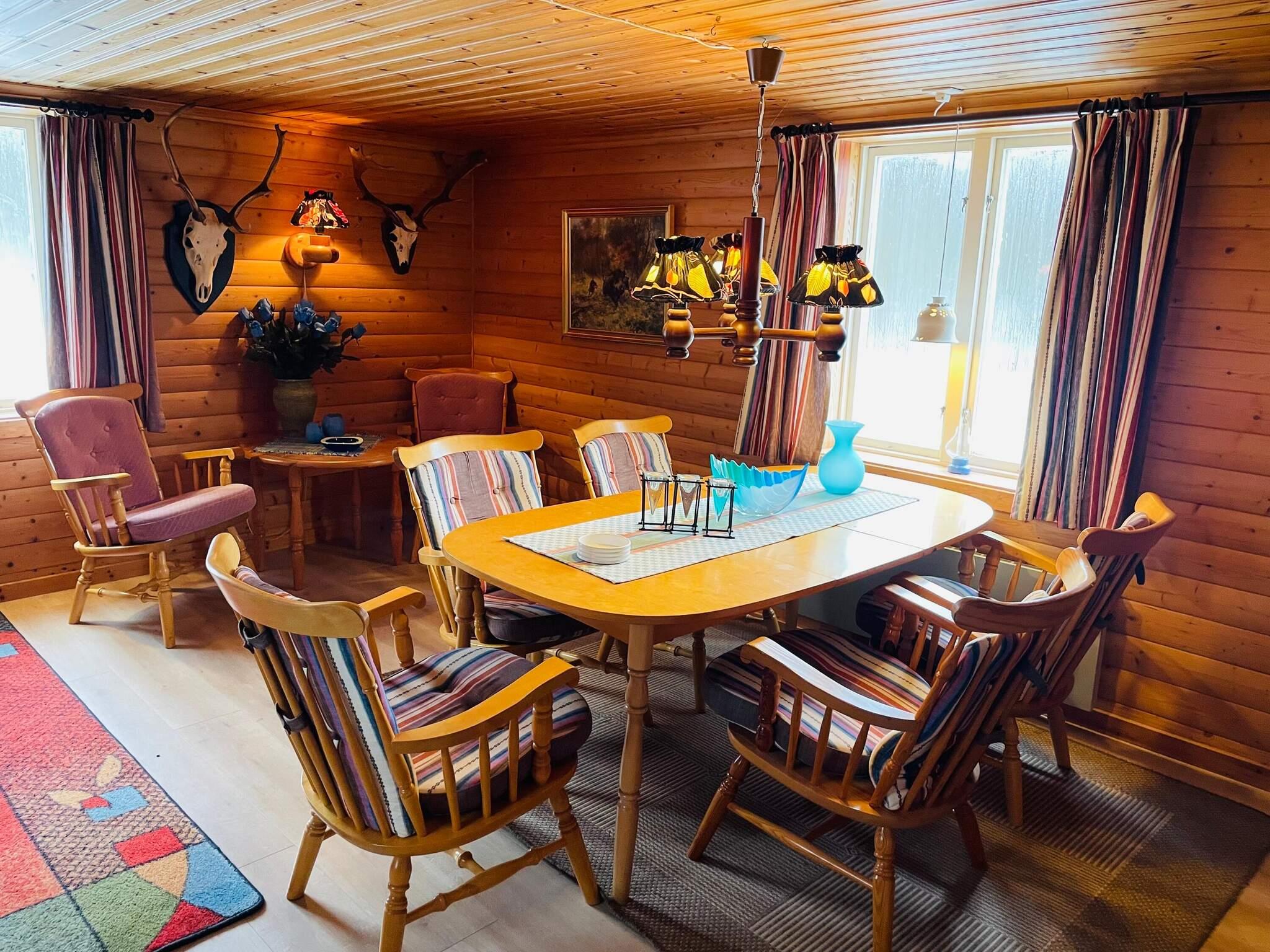 Das traditionelle Ferienhaus besticht durch seine warme und gemütliche Atmosphäre mit großzügigen Kiefernholzelementen an Wänden und Decken. Die natürlichen Materialien schaffen ein behagliches und authentisches Gefühl, das durch die im Haus verteilten Jagdtrophäen noch verstärkt wird. Mehrere einladende Aufenthaltsbereiche laden zum Verweilen mit Familie und Freunden ein – sei es bei ausgedehnten Abendessen oder zum Entspannen vor dem Kamin. Im Wohnzimmer befindet sich ein Fernseher mit Sendern in verschiedenen Sprachen. Die Küche ist für Selbstversorger ausgestattet und verfügt über Geschirrspüler und Waschmaschine.