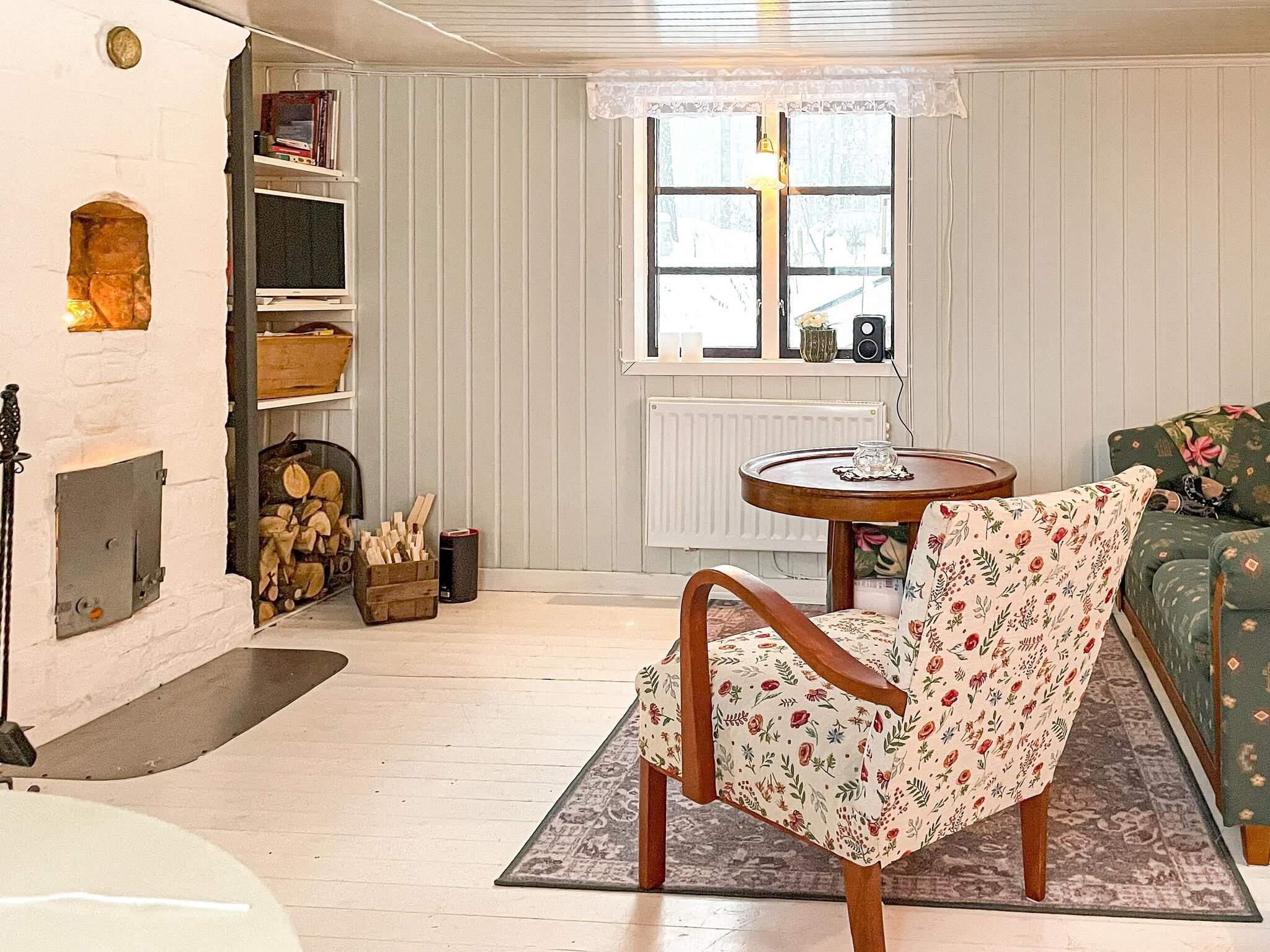 Die 55 m2 große Wohnfläche beinhaltet Küche, Wohnzimmer, Schlafzimmer mit Doppelbett und doppelte Schlafcouch (Breite 140 cm) im Wohnbereich. Die Deckenhöhe beträgt 180 cm. Sie betreten als erstes den hellen Flur mit einer Treppe ins Dachgeschoss, wo sich das Schlafzimmer und das Badezimmer mit Verbrennungstoilette und Waschbecken befinden. Direkt rechts im Erdgeschoss befindet sich das Wohnzimmer mit dem schönen Kaminofen, Sitzecke und einem kleineren Essbereich. Nur schwedische Sender im TV. Außerhalb des Hauses findet man die praktische Dusche mit heißem und kaltem Wasser, die ganzjährig genutzt werden kann.