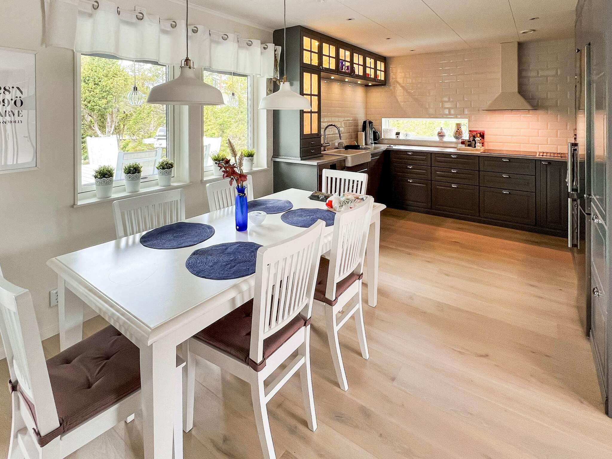 Das moderne Anwesen befindet sich in einem ruhigen und angenehmen Ferienhausgebiet und empfängt Sie mit einem großen, üppigen Naturgrundstück, das sich perfekt zum Spielen und Entspannen eignet, sowie ausreichend Parkmöglichkeiten. Das Haupthaus verfügt über eine offene Küche und ein Wohnzimmer mit wunderbarer Deckenhöhe. Hier finden Sie eine gemütliche Sitzgruppe vor dem Fernseher und Kamin. Die stilvolle Küche ist mit einem Induktionskochfeld, großzügiger Arbeitsfläche und allem, was Sie brauchen ausgestattet. Vom Wohnzimmer aus gelangen Sie hinaus auf eine schöne, nach Südwesten ausgerichtete Terrasse mit einem geräumigen Holzdeck und verschiedenen Gartenmöbeln. Dies ist der perfekte Ort, um herrliche Abendessen an Sommerabenden zu genießen!