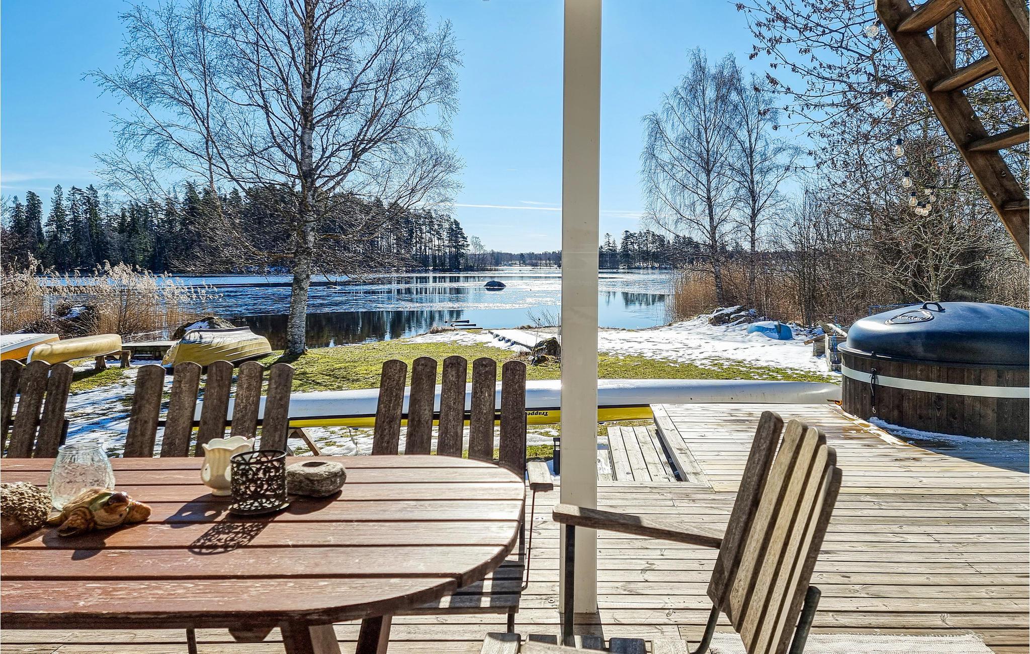Direkt am See finden Sie dieses Ferienhaus. Die Unterkunft bietet einen schönen Urlaub im Einklang mit der Natur. Als Angelhaus mit Bootsrampe und hauseigenem Ruderboot werden hier alle Angler glücklich! Rudern Sie schon am frühen Morgen los und kehren Sie für ein gutes Mittagessen auf der offenen Terrasse zurück. Die hohe Decke, der offene Schlafboden, die gemütliche Sofaecke, das einladende Dekor und der Kamin tragen zu einer schönen Atmosphäre bei. Hier werden Sie sich wohl fühlen. Packen Sie den Picknickkorb für die Nachmittagswanderung und verbringen Sie am Wasser schöne Badestunden. Auf dem riesigen Grundstück können die Kinder spielen, während Sie in der Küche beim Kochen plaudern. Lassen Sie den Tag gemütlich mit Uno am Couchtisch ausklingen und genießen Sie den Sonnenuntergang vom holzbefeuerten Außenwhirlpool mit Blick auf den See aus.