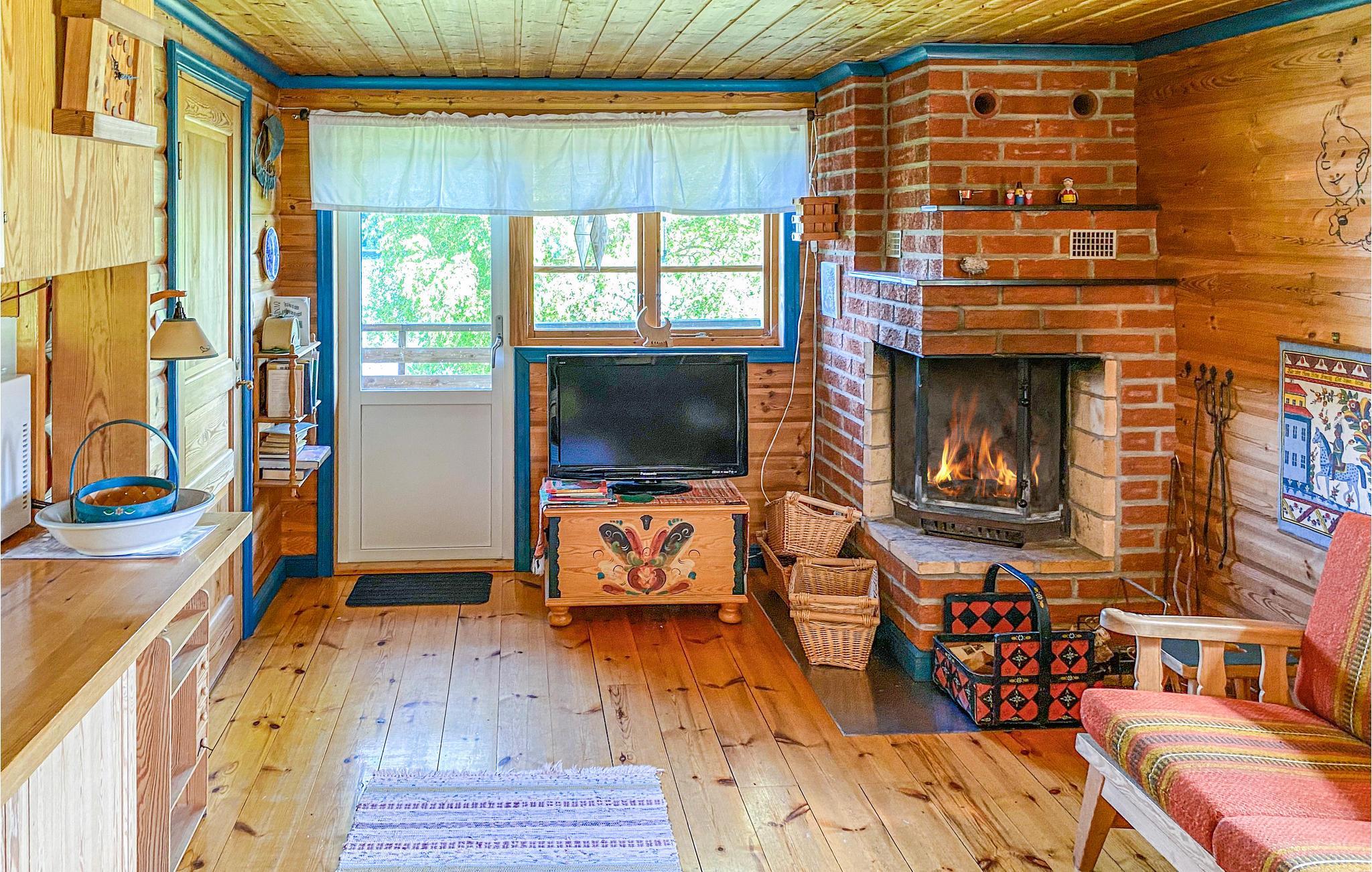 Nur wenige Meter vom Wasser entfernt, erwartet Sie dieses Ferienhaus für sieben Personen und ein Haustier. Das Wohnzimmer ist mit seiner Holzvertäfelung richtig gemütlich. Genießen Sie hier entspannte Abende auf dem Sofa mit einem prasselnden Feuer im Kamin oder mit einem guten Buch und schalten Sie vom Alltag ab. In der Sauna können Sie sich nach einer schönen Angeltour wieder aufwärmen.