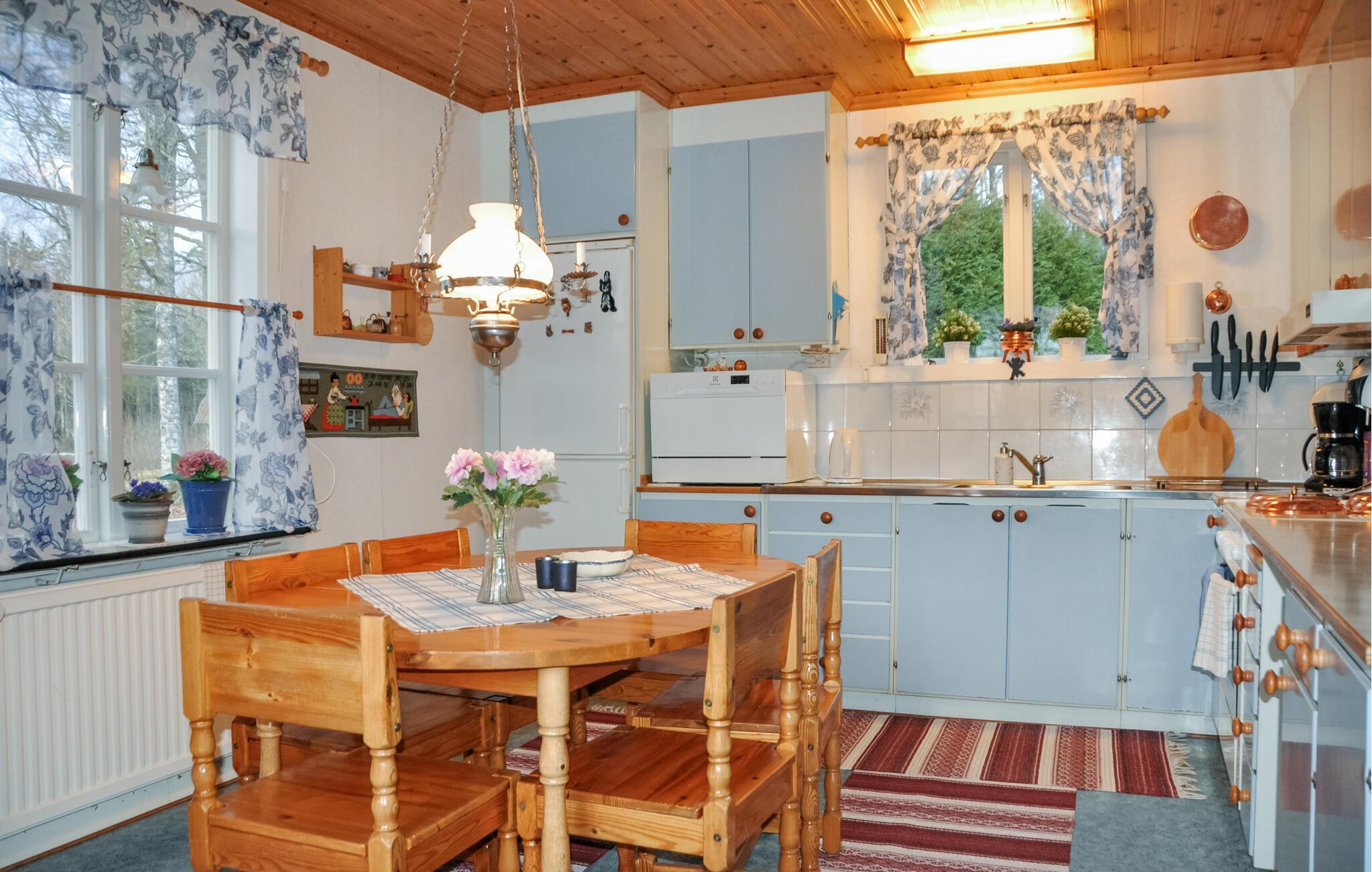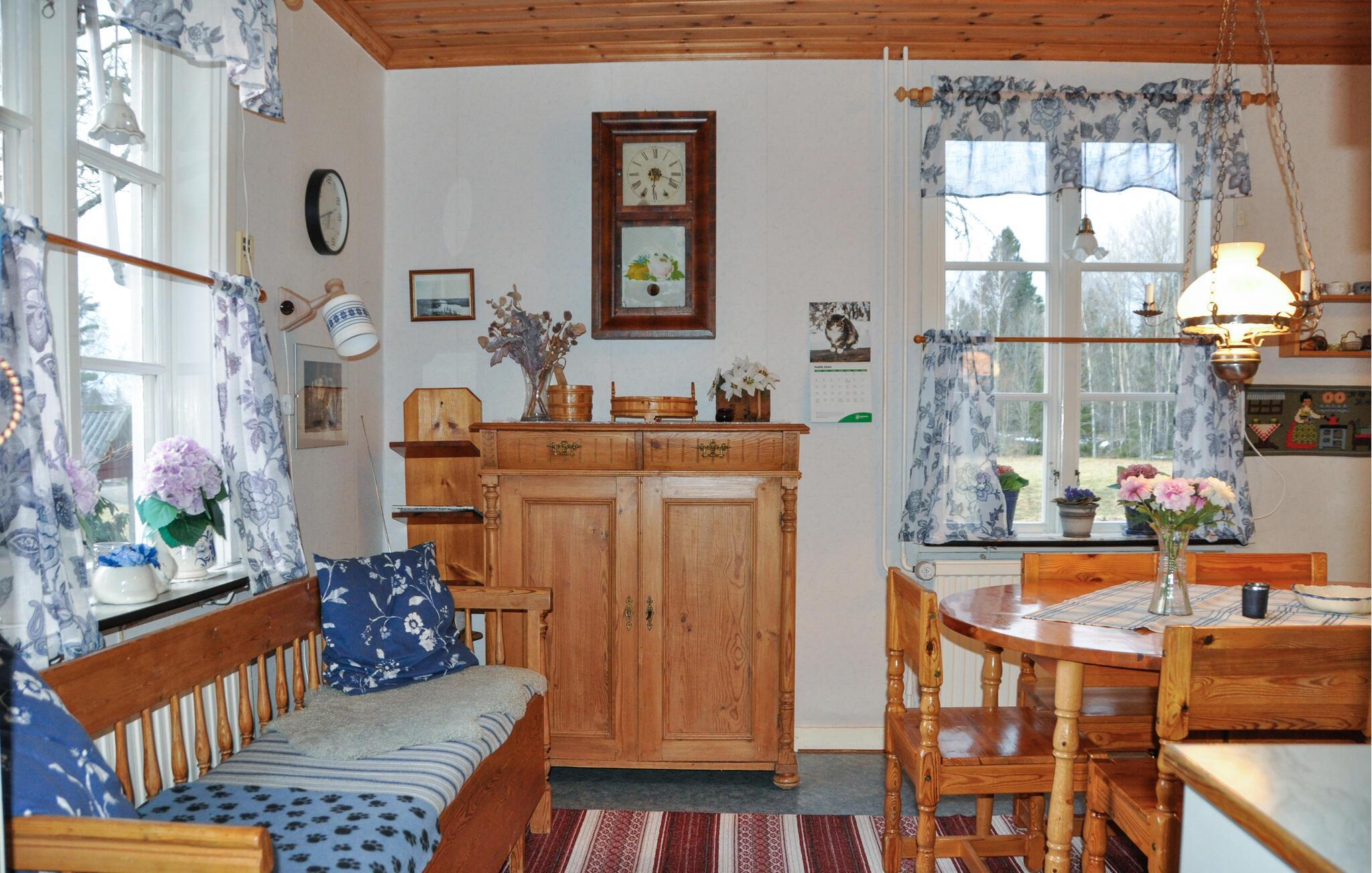 Nah am See heißt Sie dieses Ferienhaus mit Seele willkommen. Das Haus bietet Ihnen keinen großen Komfort, dafür aber eine gemütliche und charmante Atmosphäre. Das Dekor ist ein Zeugnis einer vergangenen Ära und es besteht kein Zweifel, dass das Haus mit viel Liebe eingerichtet wurde. Wenn Sie also einen recht gemütlichen Ort in der Nähe des Wassers suchen, sind Sie hier genau richtig. Hier können Sie sich zurückziehen, Karten spielen, gemeinsam backen und musizieren, Ihre Füße hochlegen und auf der Terrasse mit Seeblick bis spät in die Nacht plaudern. Wer frisch ist, kann den Tag mit einem Bad im See, morgendlichem Angeln oder einem Lauf im Grünen beginnen. Es gibt einen Bootssteg, den Sie für Ihre Angelaktivitäten nutzen können. Der Wanderweg Järnsjöleden verläuft 400 m vom Haus entfernt.