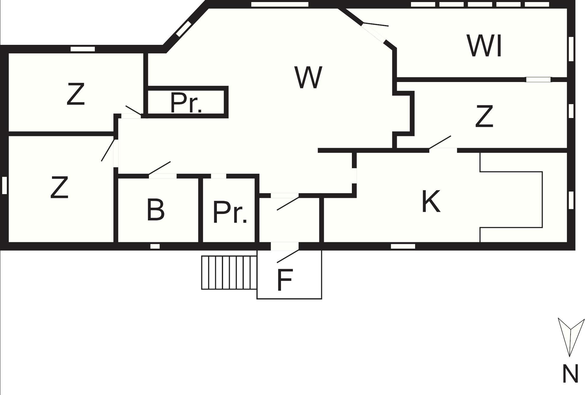Das Ferienhaus ist ebenerdig. Über die Eingangstreppe gelangen Sie zunächst in einen kleinen Flur und weiter in einen großen, offenen Wohnbereich mit Vorraum. Rechts befindet sich die Küche mit Küchenmöbeln, Herd, Mikrowelle, Kaffeemaschine und Geschirrspüler. Von der Küche aus erreichen Sie eines der Schlafzimmer mit einem Einzelbett. Links vom Flur befinden sich zwei weitere Schlafzimmer, eines mit einem 120 cm breiten Einzelbett, das andere mit zwei Einzelbetten, sowie ein Badezimmer mit Dusche und Waschmaschine. Zentral gelegen ist das große Wohnzimmer mit Essbereich, einer bequemen Sitzgruppe, Sesseln und Fernseher. Vom Wohnzimmer aus gelangt man auf die verglaste Terrasse – ein herrlicher Ort zum Essen, Plaudern und Planen der Tagesausflüge. Auf der großen Rasenfläche stehen Gartenmöbel und ein Grill bereit, ideal für Spiele und gemütliche Abende mit Gegrilltem. Das Ferienhaus verfügt über einen Glasfaseranschluss.