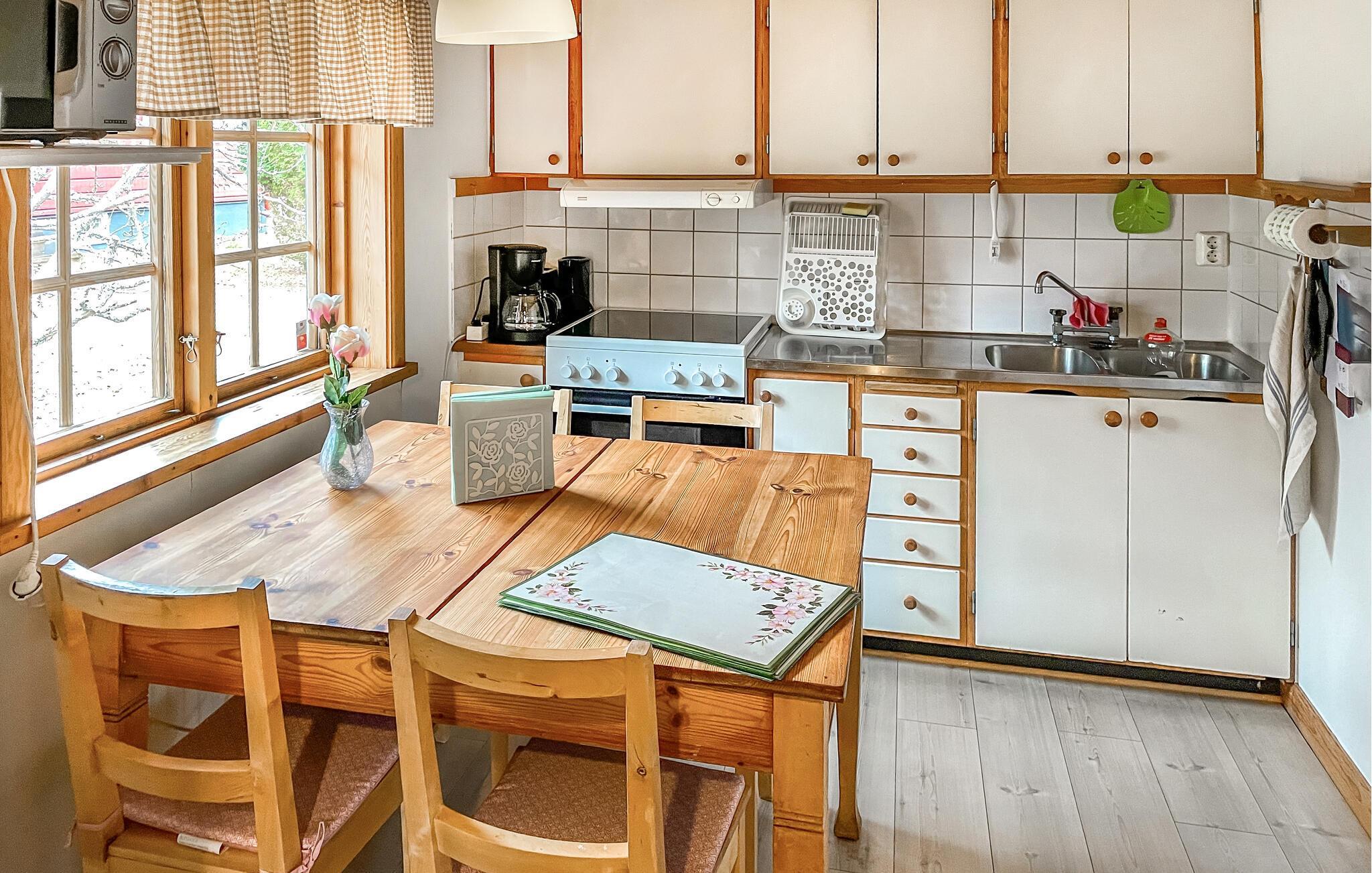 Ihr klassisches rotes Ferienhaus versprüht skandinavischen Charme und bietet eine gemütliche Atmosphäre. Die gemütliche Essküche des Ferienhauses ist funktional und gut ausgestattet. Nehmen Sie hier Ihre gemeinsamen Mahlzeiten ein und planen Sie morgens Ihre Aktivitäten für den Tag. Im Wohnbereich lädt das bequeme Sofa zum Entspannen ein, und ein Kaminofen sorgt an kühleren Abenden für wohlige Wärme und eine behagliche Stimmung. Genießen Sie hier ruhige Lesestunden oder spielen Sie lustige Brett- und Kartenspiele mit Ihrer Familie.