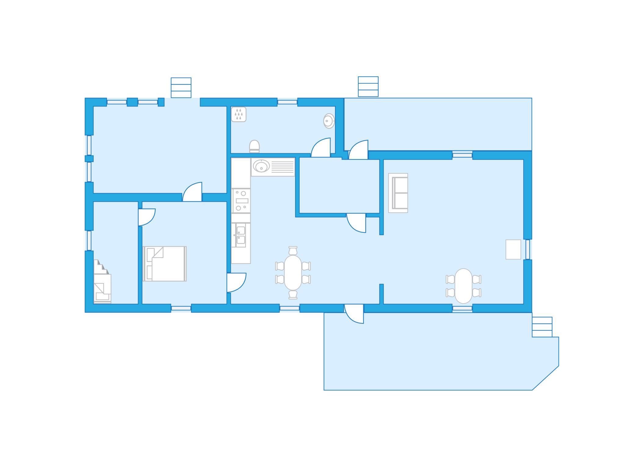 "Gissarp Gryningen", 3-room house 88 m2. Tasteful furnishings: living/sleeping room with 1 double sofabed, Scandinavian wood stove, dining table and satellite TV. Walk-through room with 1 double bed. Exit to the veranda. 1 small room with 1 x 2 bunk beds. Open kitchen (4 hot plates, oven, microwave, freezer, electric coffee machine). Exit to the terrace. Shower/WC. Electric heating. Terrace roofed. Terrace furniture, conservatory. View of the lake. Facilities: washing machine. Please note: non-smoking house. Smoke alarm, fire extinguisher. Freezer approx. 100 l. Bed layout is flexible. There are more sleeping options available than the maximum number of people allowed which may, however, not be exceeded.