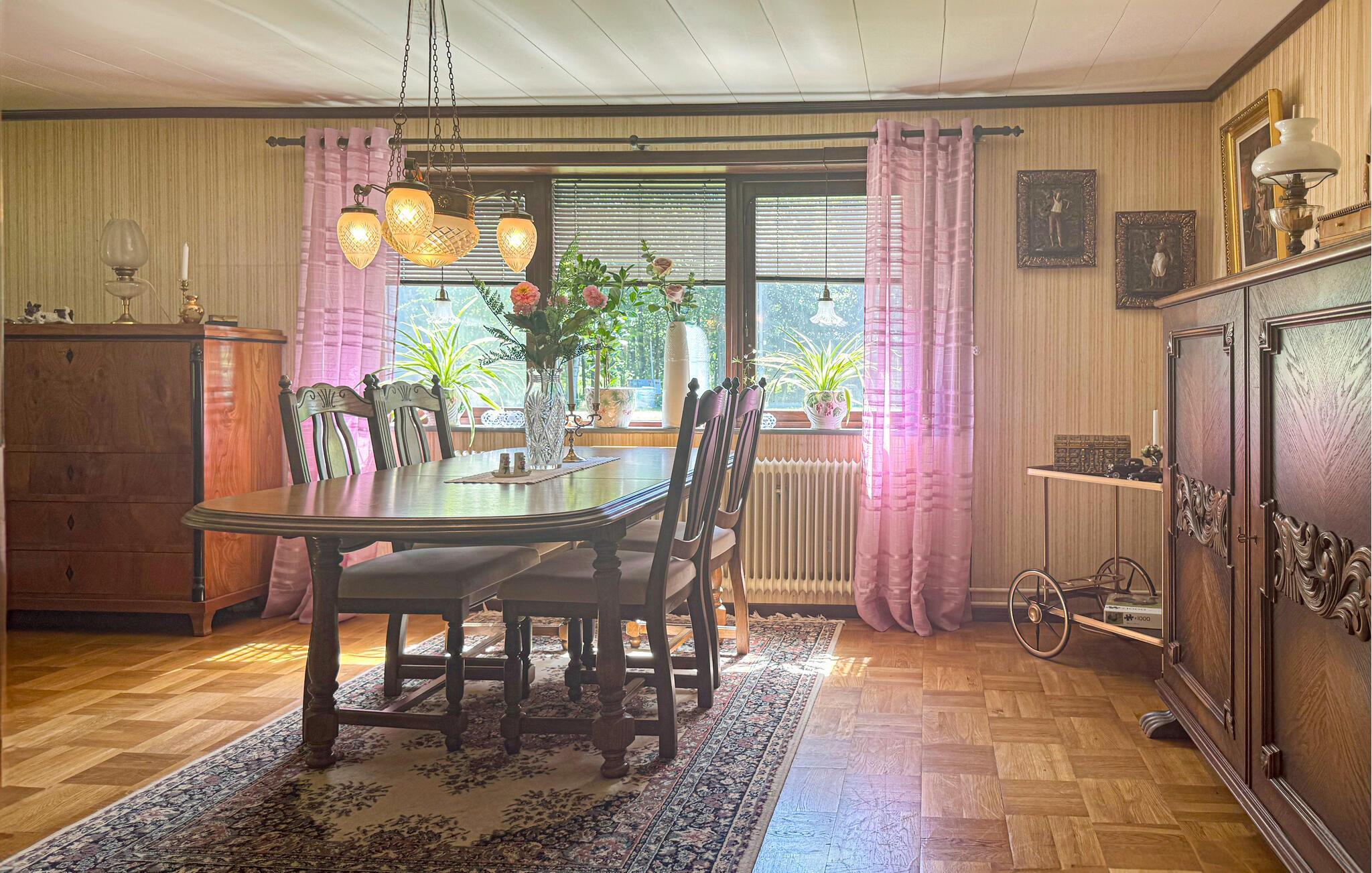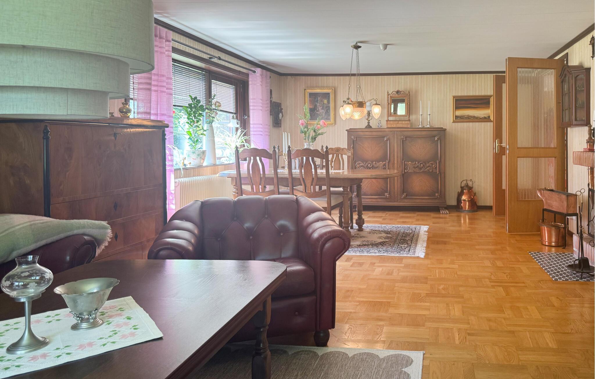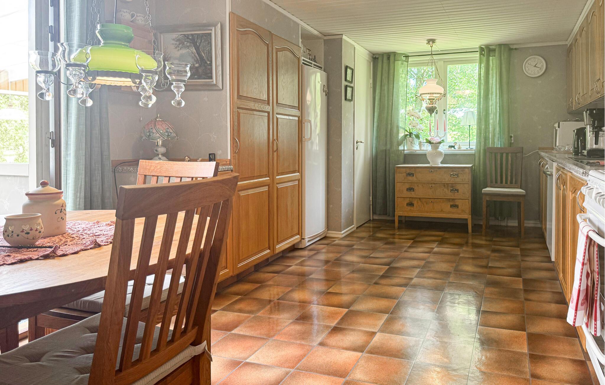 Dieses geräumige Ferienhaus liegt eingebettet in ein großes Grundstück und lädt Sie in eine zauberhafte Atmosphäre aus antiken Möbeln und nostalgischen Details ein. Hier werden Sie mit viel Ruhe verwöhnt; das Abschalten vom Alltag wird Ihnen leichtfallen. Bereiten Sie sich Ihre Lieblingsgerichte zu, freuen Sie sich auf harmonische Mahlzeiten mit Blick ins Grüne, plaudern Sie abends bei einem Glas Wein oder machen Sie es sich mit einem Brettspiel auf dem Sofa gemütlich.