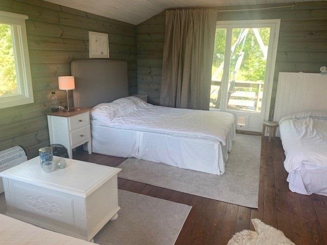 Das Ferienhaus verfügt über eine offen gestaltete Küche mit Elektroherd, Backofen, Geschirrspüler, Kühl- und Gefrierschrank, Mikrowelle und Kaffeemaschine. Im Wohn- und Esszimmer findest du einen offenen Kamin, einen Esstisch, eine Sitzgruppe und Apple-TV; außerdem steht dir WiFi zur Verfügung. In einem der Schlafzimmer steht ein Doppelbett, das andere ist mit einem Etagenbett ausgestattet. Das kleine Badezimmer ist mit Dusche und WC und fließend warmem Wasser ausgestattet. Im Gästehaus findest du ein weiteres Doppelbett und zwei Einzelbetten. Die Veranda des Gästehauses bietet einen herrlichen Meerblick. Mahlzeiten kannst du in der Küche, auf dem großen Grill oder in der Outdoorküche vorbereiten. Ein eigenes Ruderboot steht eventuell auf Anfrage bei ausreichender Kenntnis des Schärengartens zur Verfügung.