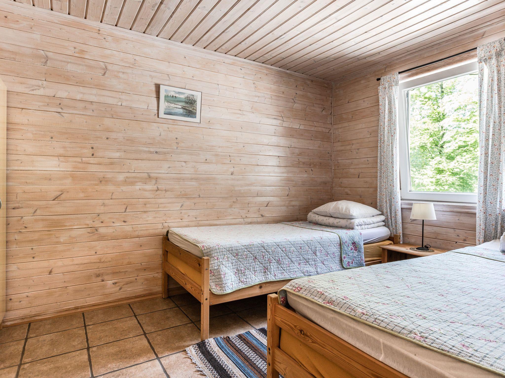 "Erikstorp 143", 3-room house 88 m2. Object suitable for 6 adults. Beautiful and cosy furnishings: living/sleeping room with 1 double sofabed, Scandinavian wood stove and satellite TV. Exit to the veranda. 1 room with 1 double bed. 1 room with 2 beds. Open kitchen (4 hot plates, oven, microwave, freezer, electric coffee machine) with dining table. Exit to the veranda. Shower/WC, Sauna. Electric heating. View of the lake. Facilities: washing machine. Please note: non-smokers only. Freezerapprox. 100 l. Only allowed to use the owners wood for the fireplace.