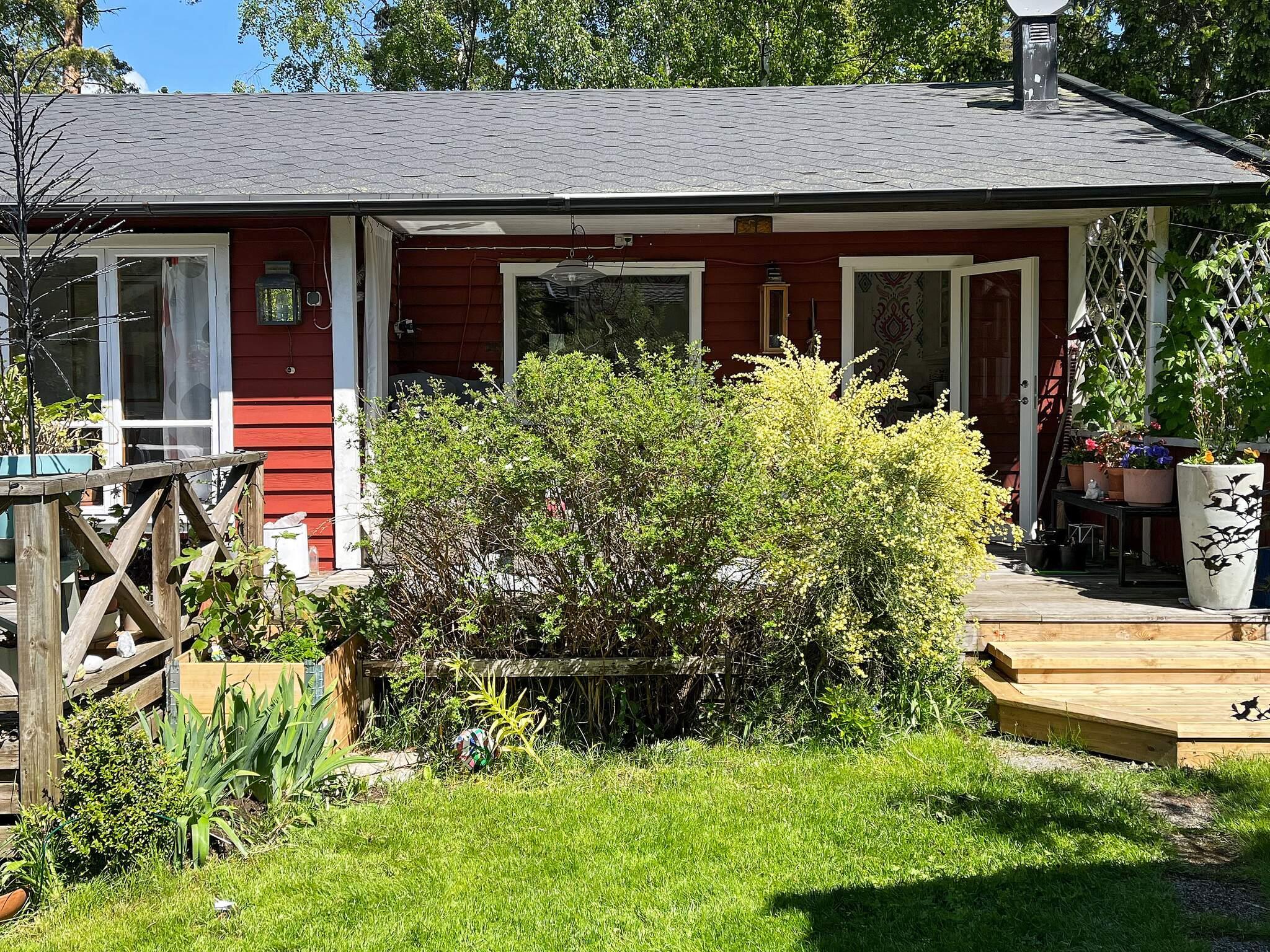 Gegenüber des Hauses, steht der kleinere Annex mit zwei weiteren Schlafplätzen, einer kleinen Küche sowie Sauna und Dusche. Das Grundstück liegt gegenüber einer Wiese, auf der Sie in der Abenddämmerung sowohl Rehe als auch Elche beobachten können. Etwa 700 m vom Haus entfernt befindet sich ein schönes, seichtes Badeufer mit Steg sowie einigen Felsen ringsum, die sich ebenfalls zum Baden eignen. Es gibt mehrere Restaurants auf der Insel, wenn die Küche auch mal Urlaub machen soll.
