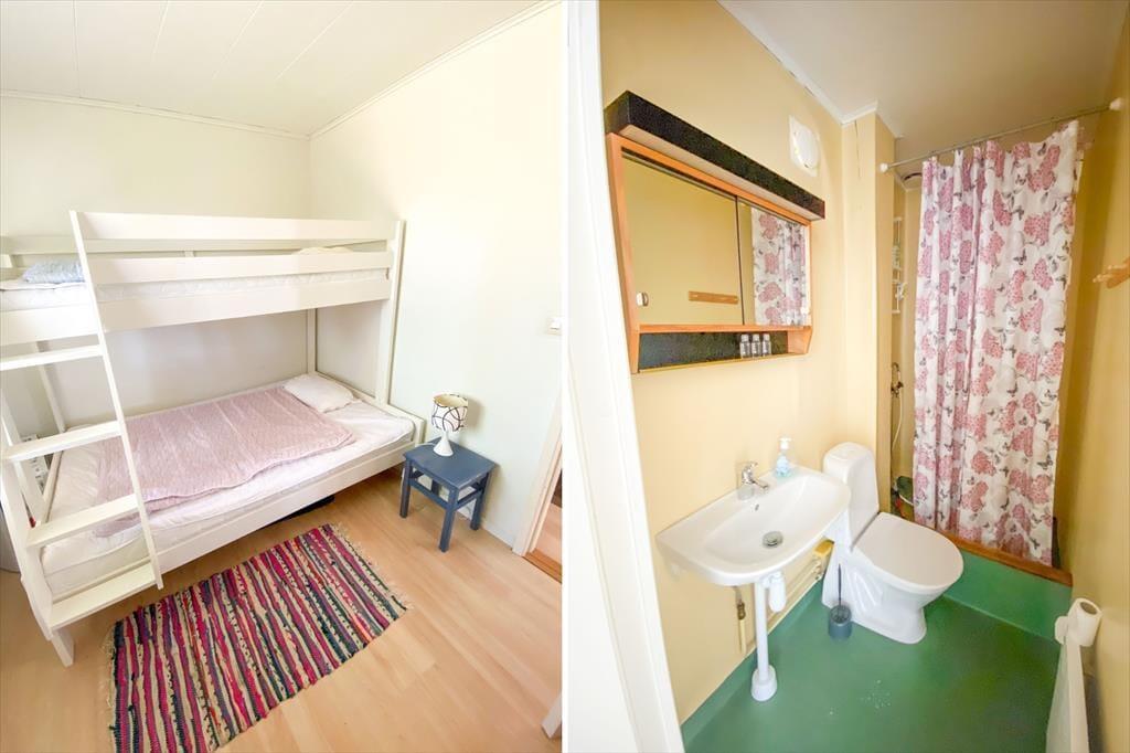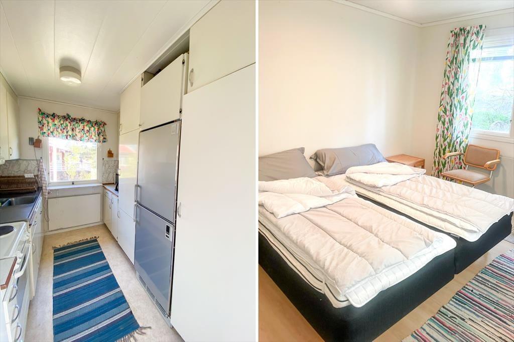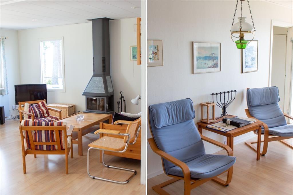 Das etwa 75 m² große Ferienhaus aus dem Jahr 1985 bietet drei Zimmer, Wohnzimmer, Küche, ein Bad und ein separates WC. Drei Schlafzimmer stehen zur Verfügung: eines mit einem Doppelbett, zwei weitere mit je einem Etagenbett. Im Wohnzimmer findest du einen Kaminofen, eine Sitzecke, einen Esstisch mit Meerblick, TV und einen Ausgang zur Veranda. Internet über Glasfaser ist vorhanden. Die Küche ist mit einem Elektroherd, Backofen, einer Kühl- und Gefrierkombination, einer Kaffeemaschine und einem Toaster ausgestattet. Im Badezimmer gibt es eine Dusche und ein WC. Zusätzlich steht dir ein kleiner Waschraum mit einer Waschmaschine zur Verfügung. Im Außenbereich findest du eine große Veranda mit Meerblick, Gartenmöbel, einen Grill und einen privaten Kai mit Steg. Ein Parkplatz befindet sich direkt am Haus.