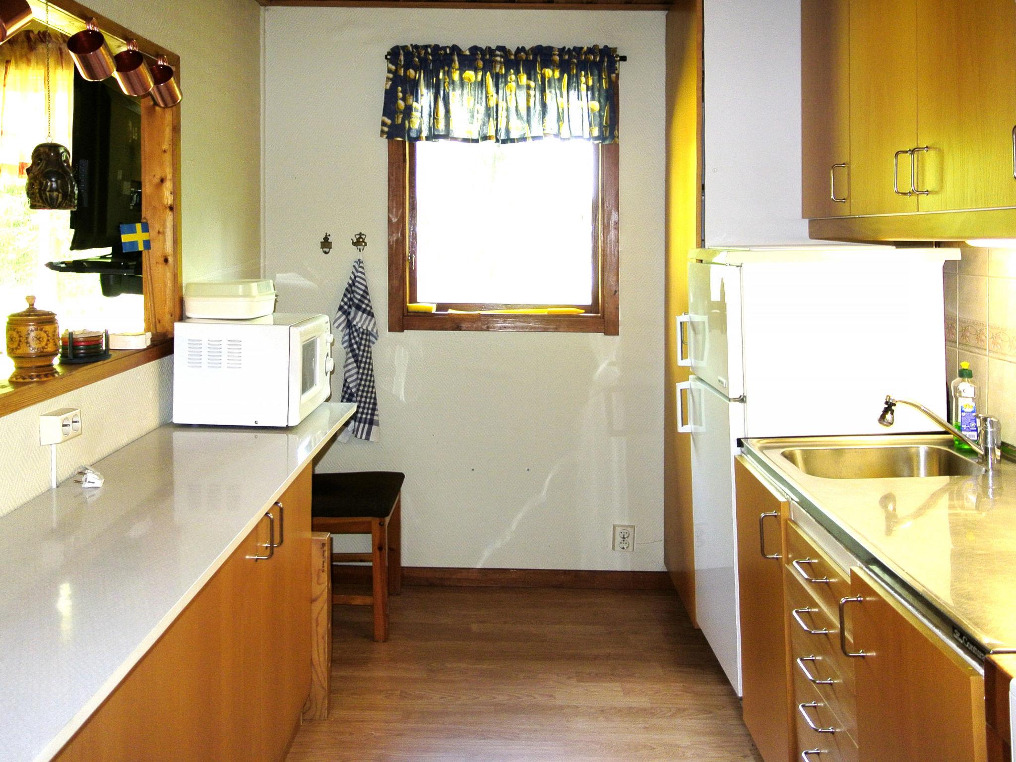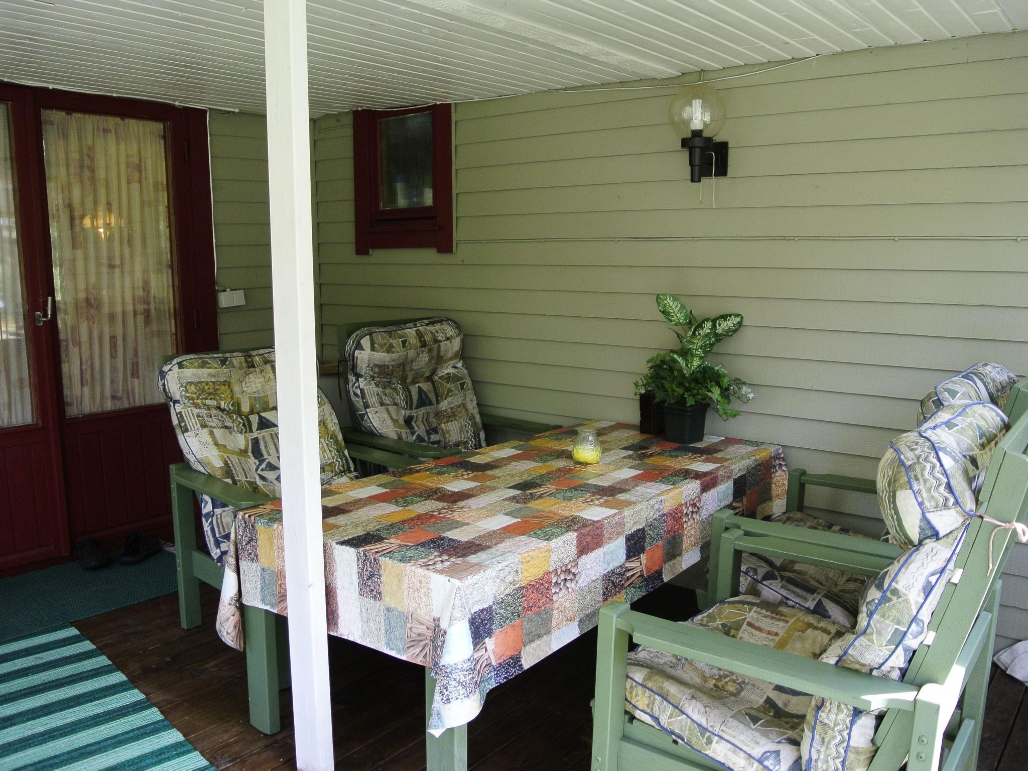 "Öja", 3-room house 53 m2 on 2 levels. Cosy furnishings: living/sleeping room with 1 double sofabed, Scandinavian wood stove, dining table and satellite TV. Exit to the veranda. 1 room with 2 beds. 1 room with 1 double bed. Open kitchen (4 hot plates, oven, kettle, microwave, freezer, electric coffee machine). On the lower ground floor: shower/WC. Electric heating. Wooden floors. Terrace roofed. Terrace furniture, barbecue (portable). View of the lake. Facilities: washing machine. Please note: one double bedroom is outside the apartment. Non-smoking house. Fire extinguisher. No internal connecting door between the separated properties. Freezer approx. 180 l.