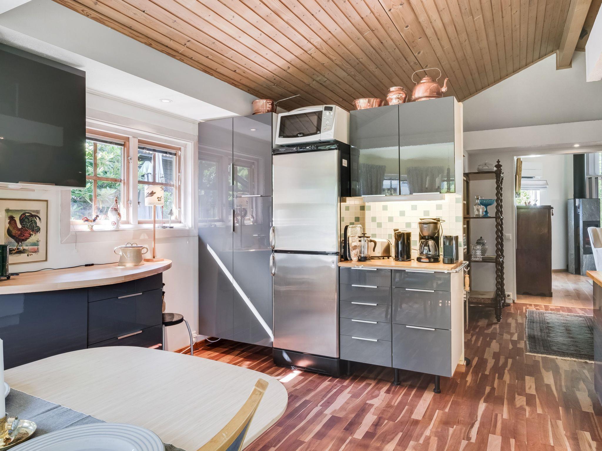 "Rindö", 4-room house 100 m2. Bright, beautiful furnishings: living room with Scandinavian wood stove, dining table, TV and hi-fi system. Exit to the terrace. Living/sleeping room with 1 sofabed. 1 room with 1 bed and 1 pull-out bed. 1 open double bedroom with 1 double bed. Open kitchen (oven, dishwasher, 4 ceramic glass hob hotplates, microwave, freezer, electric coffee machine) with dining table. Shower/WC. Air-conditioning, forced-air heating. Parquet floors. Terrace. Terrace furniture, barbecue (portable). Facilities: washing machine, dryer, iron. Please note: non-smoking house. Smoke alarm, fire extinguisher. Freezer approx. 200 l. Instead of an enclosed bedroom, some sleeping areas are located in an open-plan area (gallery, alcove, etc.). Bed layout is flexible. There are more sleeping options available than the maximum number of people allowed which may, however, not be exceeded. RINDÖ 3:272