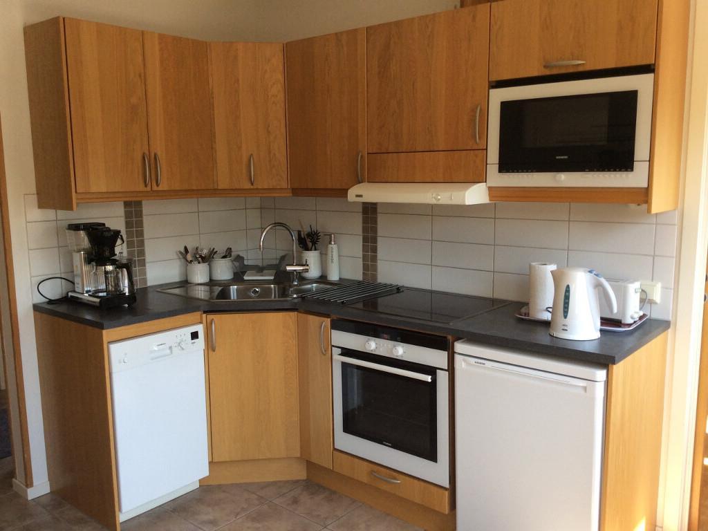 Das Ferienhaus verfügt über zwei Zimmer und eine Küche und beträgt insgesamt eine Fläche von 45 m2. Die Küche verfügt über einen Herd, einen Backofen, eine Mikrowelle, einen Geschirrspüler und einen kleinen Kühlschrank mit Gefrierfach. Das Badezimmer ist sehr schön und verfügt über ein WC und eine Dusche.
