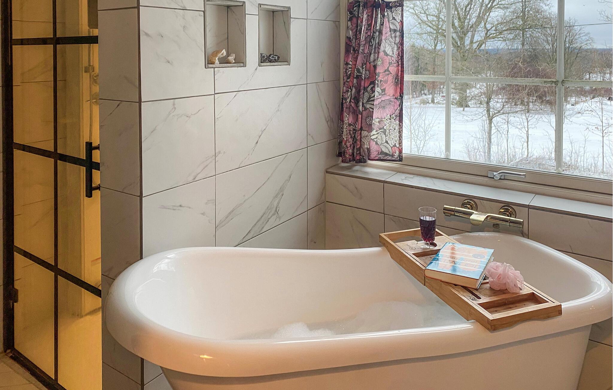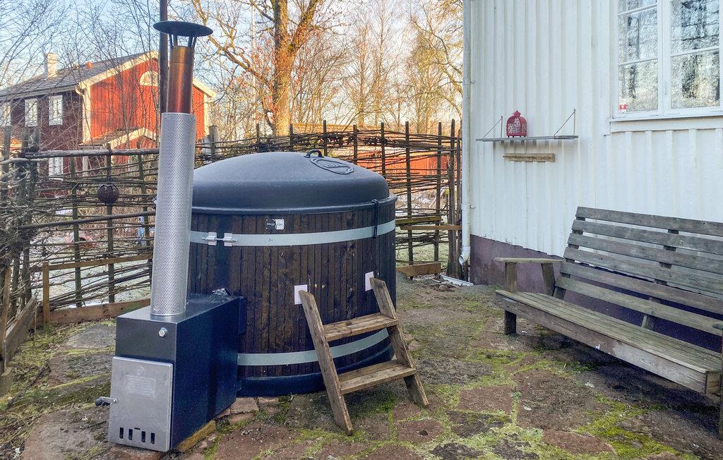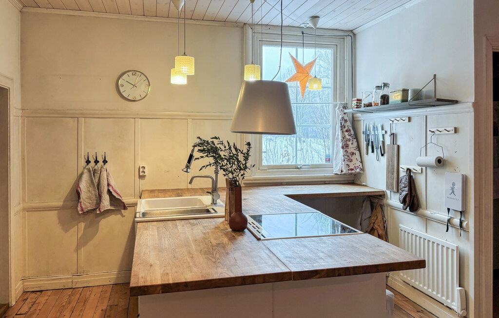 Das liebevoll eingerichtete Ferienhaus vereint rustikale Gemütlichkeit mit modernem Komfort. Die hellen Räume, die freundliche Dekoration und der einladende Wohnbereich mit Kamin sorgen für eine entspannte Atmosphäre. Gönnen Sie sich ein wenig Wellness, schwitzen in der Sauna oder nehmen ein Schaumbad in der Badewanne. In der gut ausgestatteten Küche können Sie regionale Spezialitäten zubereiten und Ihre Mahlzeiten anschließend auf der schönen Holzterrasse genießen – ideal für entspannte Stunden an der frischen Luft. Der weitläufige Garten lädt Sie zu Spielen und Erholung ein.