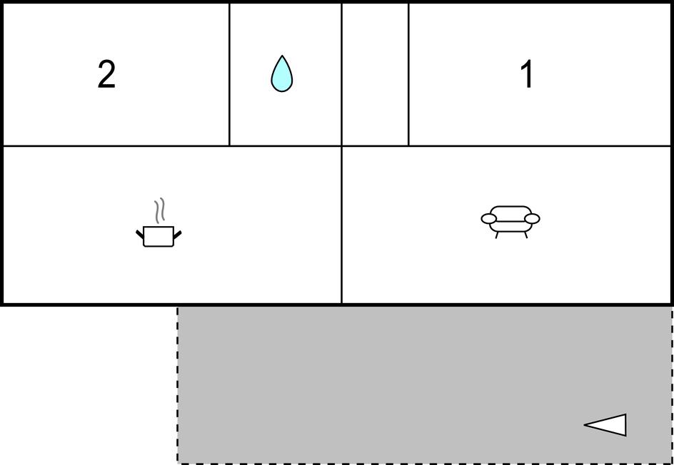 Badezimmer (nr. 1) - WC. Warmes und kaltes Wasser. Dusche