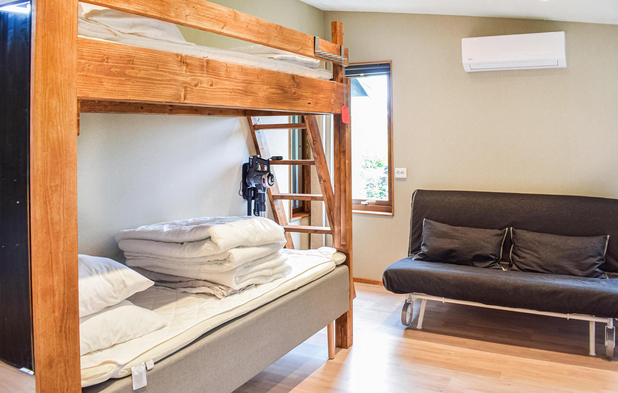 Wohnraum/Küche - 2 Schlafmöglichkeiten. (Etagenbett). 2 Schlafmöglichkeiten. (Schlafsofa,Matratze,Sonstiges).