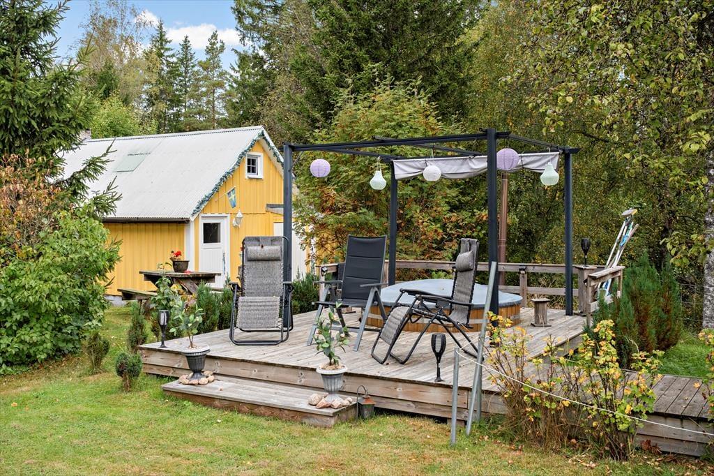 Im malerischen Västergötland, nahe der Grenze zu Småland, befindet sich auf einem 120.000 m² großen Grundstück ein ehemaliger Bauernhof, dessen Eigner dort neben einem weiteren dieses Ferienhaus vermieten. Pigahuset - das heißt übersetzt "Haus der Magd". Das andere Ferienhaus liegt ein wenig weiter entfernt und heißt "Dränghuset", was "Haus des Hofknechts" bedeutet, wie man ihn etwa aus Astrid-Lindgren-Geschichten kennt. Ein kleiner Fluss fließt direkt am Grundstück vorbei und eignet sich für kurze Bäder und zum Angeln. Auf den drei Seen Stora Hagasjön, Lillan und Drägvedsjön haben die Hauseigner das Angelrecht inne, sodass Sie dort kostenlos und ohne Angelkarte angeln dürfen. Ruderboote und Kanus sind ebenfalls inklusive. Für das Ruderboot können Sie einen 4-PS-Motor für 50 EUR pro Woche mieten. Der nächste öffentliche und kinderfreundliche Badeplatz am Skäremoskön liegt ca. 3 km entfernt. Bis zu den beiden nächstgrößeren Orten Tranemo und Gislaved sind es jeweils ca. 25 km, wo Sie unter anderem Lebensmittelgeschäfte finden. Ein schönes Restaurant und Café gibt es auf dem 7 km entfernten Påarps Gård.