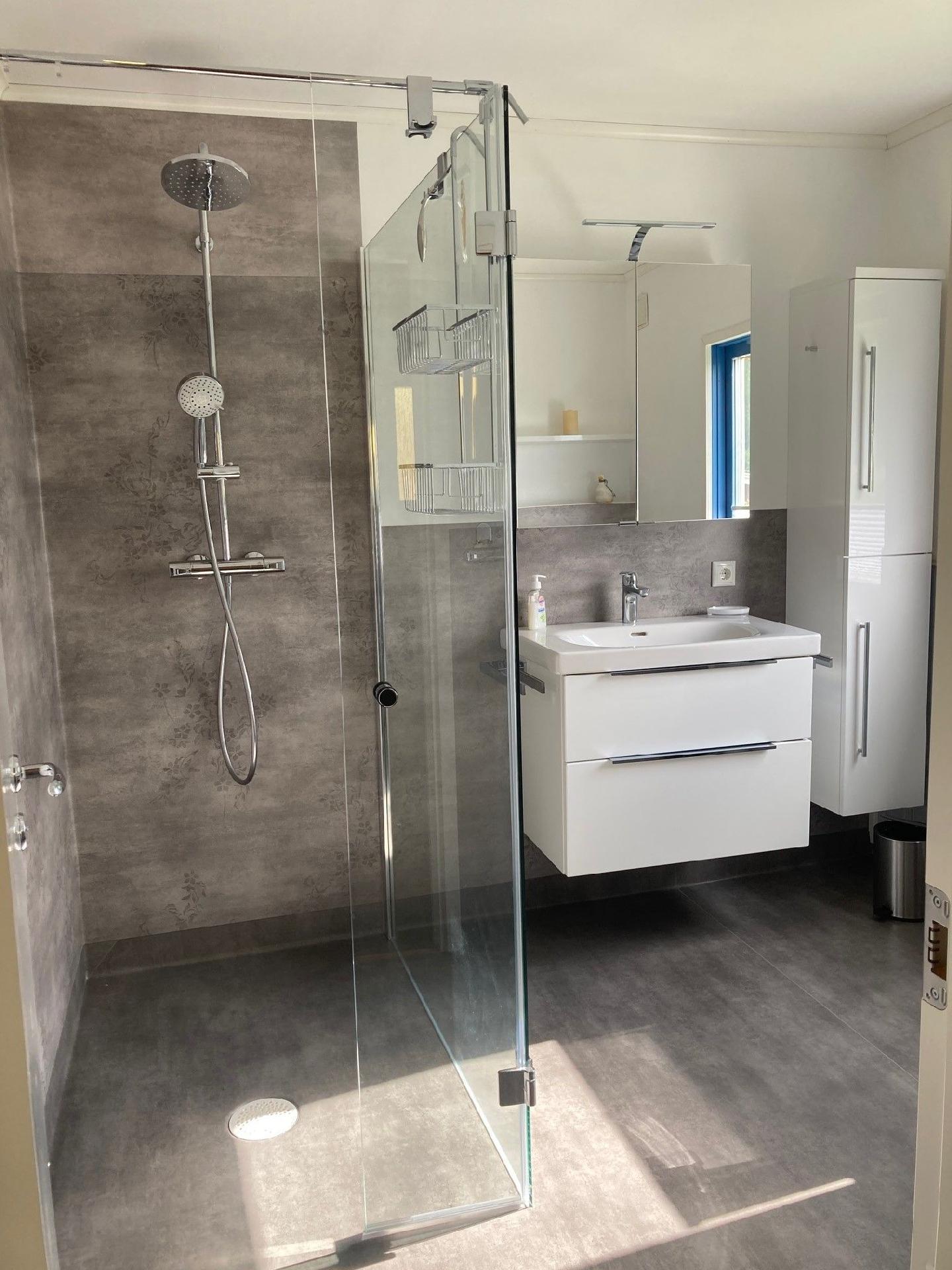 You can relax and enjoy the fabulous view of the lake from the terrace. You can play and grill in the little garden. To the left of the front door there is a roofed veranda with garden furniture, facing east. It is ideal for having breakfast in the morning sun. To the left of the veranda there is a storage room for games, a grill, bicycles etc. To the left of the house there is a little guest house, which also has a veranda with a view of the lake. The guest house has two single beds (90 x 200cm), a bedside table and wardrobes for clothing. Also a TV is provided in the guesthouse.