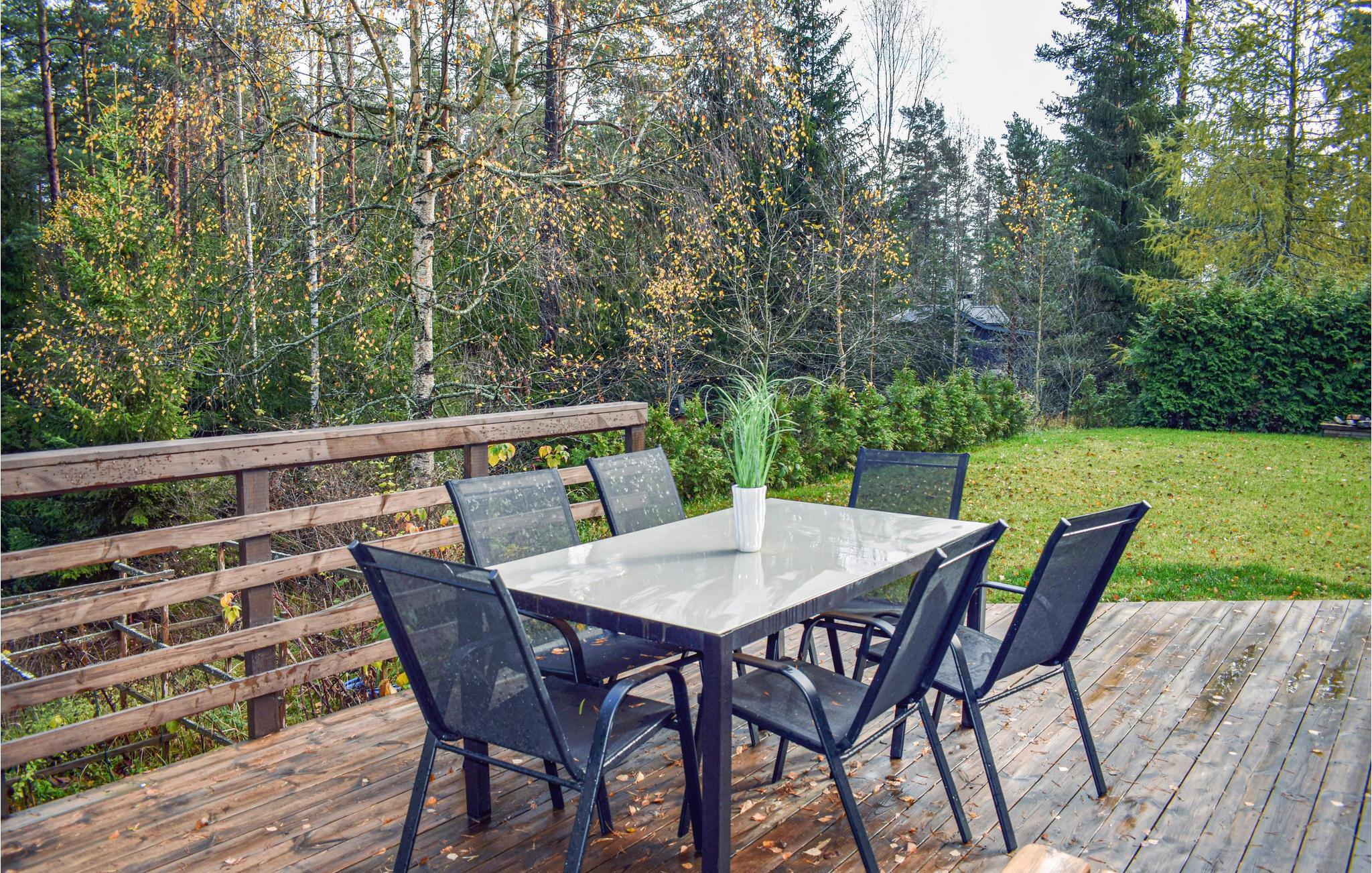 Treten Sie ins Freie, wo die Terrasse zum Entspannen einlädt. Genießen Sie nach einem Saunagang den schönen Blick auf den Wald auf dem verglasten Balkon und bereiten Sie leckere Gerichte in der Außenküche zu.