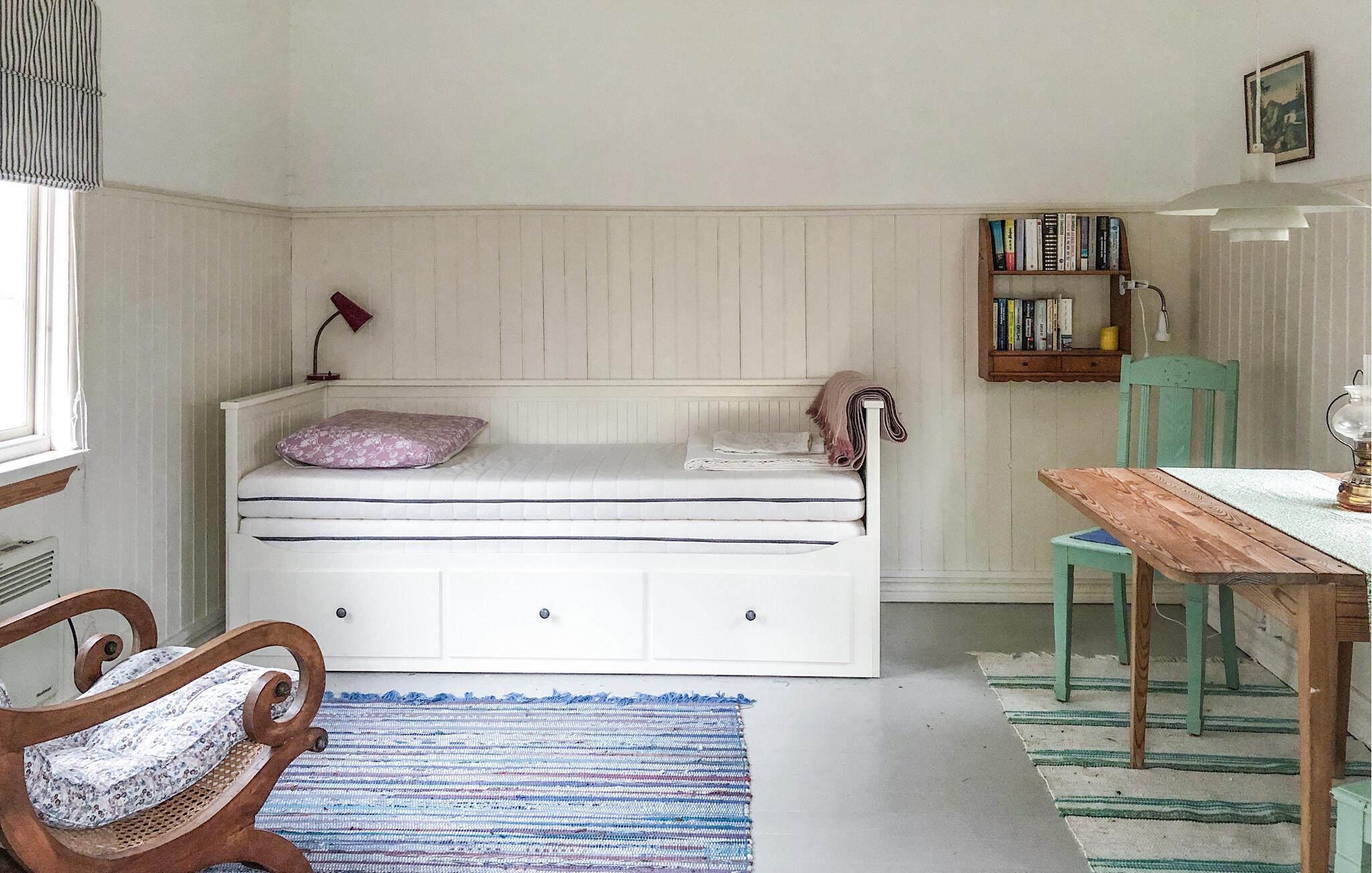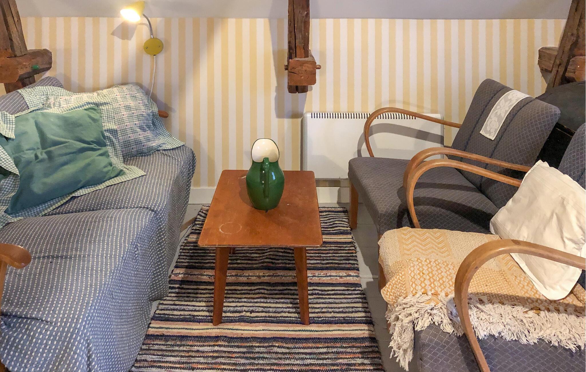 Das Haus stammt aus den 1800er Jahren und man spürt die Geschichte, denn breite Dielenböden, freiliegende Holzwände und schöne alte Kamine verleihen dem Wohnzimmer und den Schlafzimmern eine gemütliche Atmosphäre, die Sie auf einen Regentag hoffen lässt, an dem Sie ein Feuer im Kamin und ein gutes Buch oder ein Spiel genießen können. Es gibt auch einen Projektor im Haus, so dass man mit einem von zu Hause mitgebrachten PC auch das Heimkino einschalten kann. Die alte Küche des Hauses wurde beibehalten, aber erweitert, um Platz für eine große Familie und Freunde zu schaffen, und lädt dazu ein, die Himbeeren, Blaubeeren oder Pilze zuzubereiten, die Sie auf kurzen Spaziergängen in der Umgebung ernten können. Die Küche ist das Herzstück des Hauses und schließt direkt an die sonnige Terrasse und den Garten an, so können Sie, auch wenn Sie sich mit der Zubereitung köstlicher Speisen Zeit lassen wollen, mit den Aktivitäten der Familie Schritt halten. Das Obergeschoss ist für zusätzlichen Platz ausgelegt, denn das Haus kann problemlos viele Gäste beherbergen, und der kleine, gemütliche Anbau ist immer gefragt.