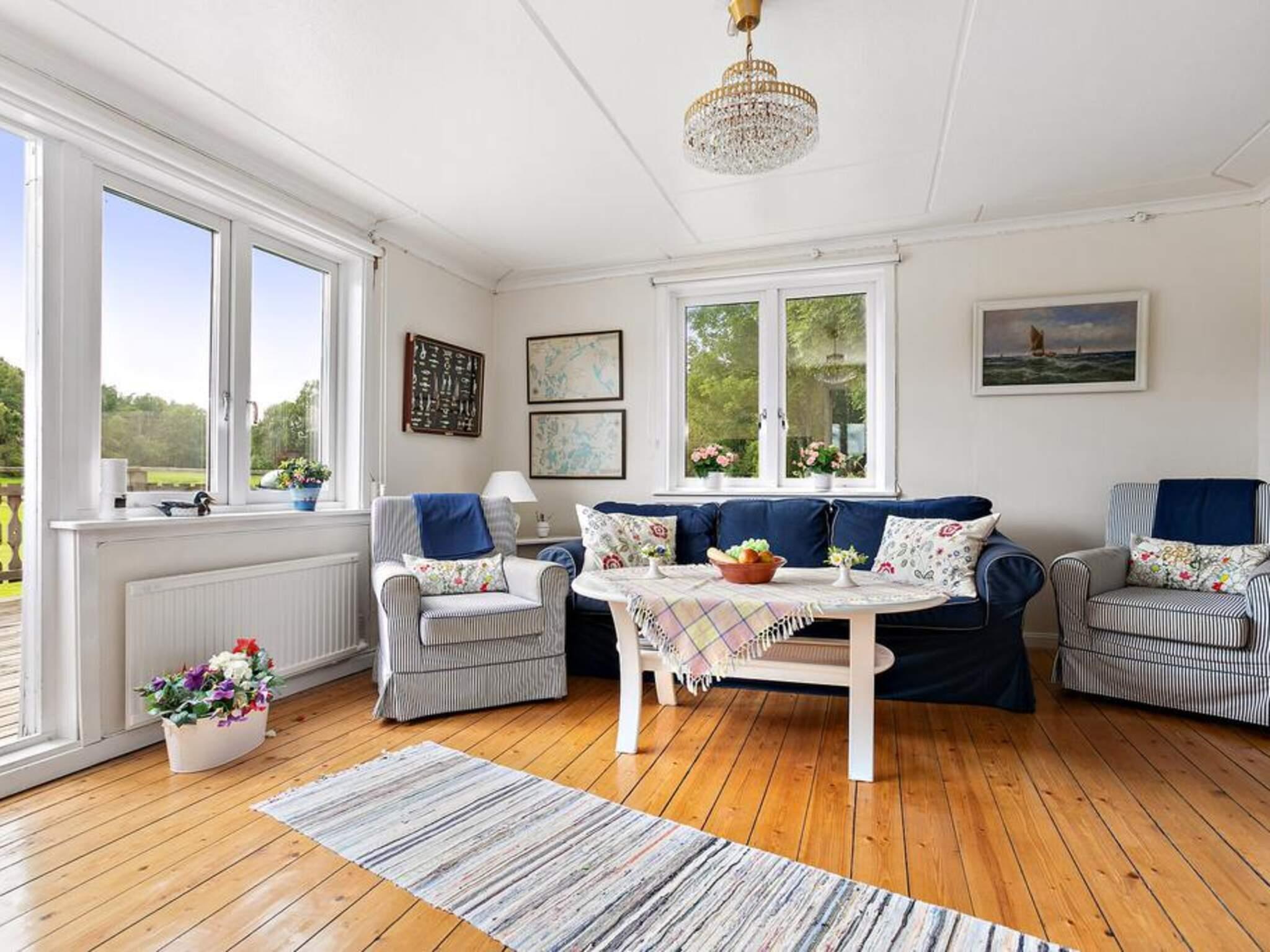 Das Ferienhaus erstreckt sich über zwei Etagen. Von der Veranda aus werden Sie in die gemütliche und moderne Landhausküche mit einem schönen gemauerten Holzofen geleitet. Hier gibt es einen Kühl- und Gefrierschrank, eine eingebaute Mikrowelle sowie einen eingebauten Backofen, Herd und Geschirrspüler. Neben der Küche liegt der Flur, der in eines der Schlafzimmer, mit einem bequemen Doppelbett und einem schönen Blick auf das Meer, führt. Das Wohnzimmer grenzt an die Küche und hat Zugang zur erhöhten Veranda. Hier gibt es einen schönen Kachelofen, der an kühleren Tagen gut wärmt. Das Esszimmer mit Esstisch liegt direkt neben dem Wohnzimmer. Das Badezimmer ist mit einer Dusche, Waschmaschine und Fußbodenheizung ausgestattet.