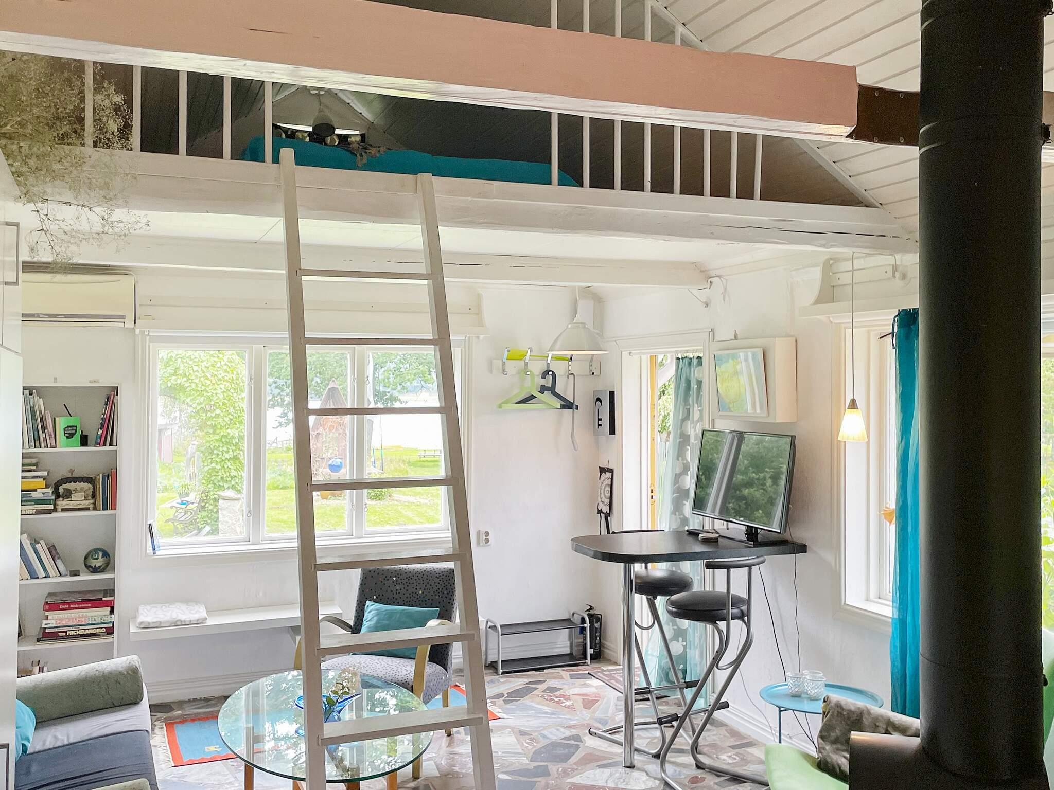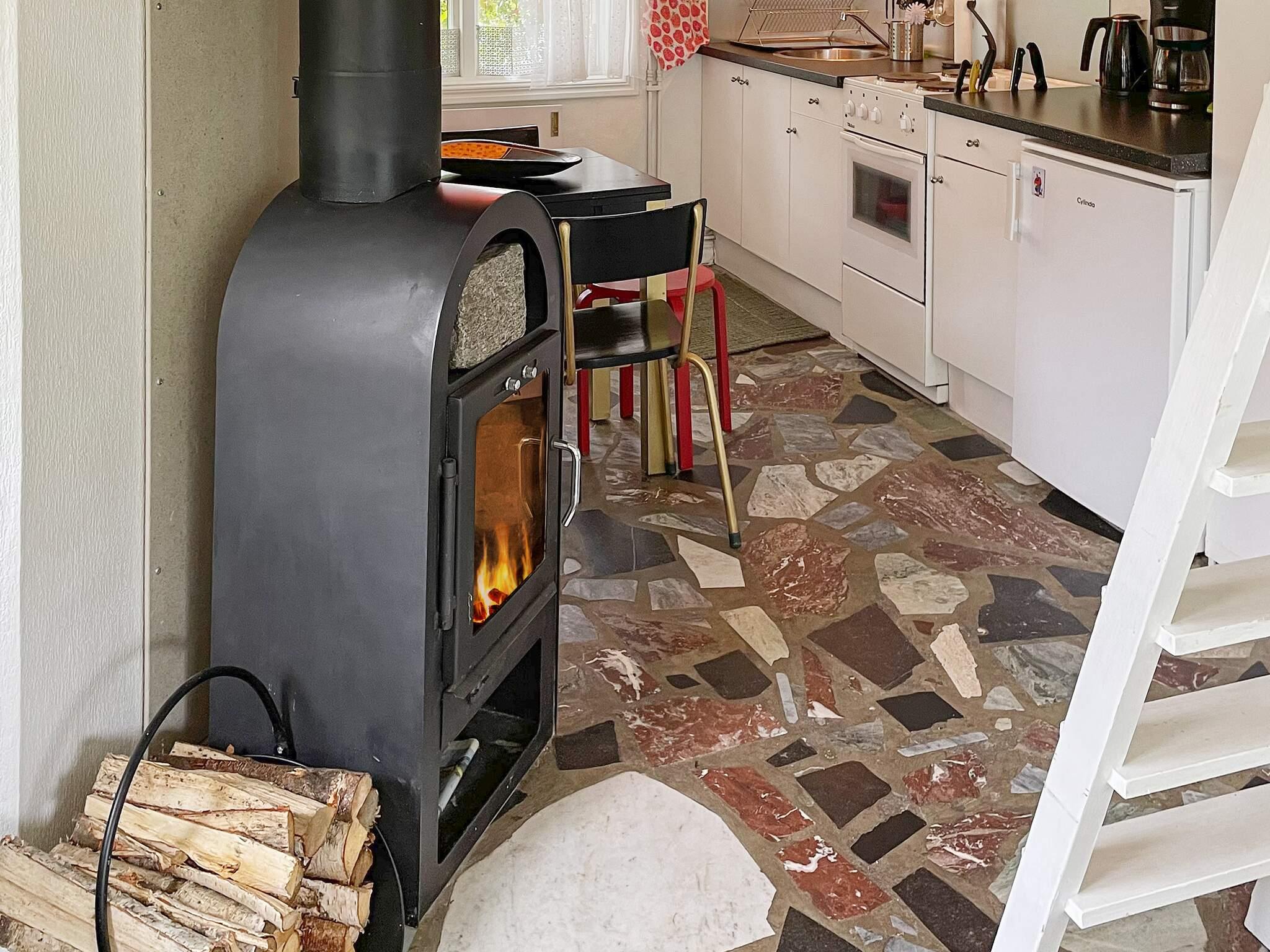 Es gibt einen gemütlichen Ruhebereich und eine Sauna im Haus. Direkt vor der Tür finden Sie Sonnenliegen, Gartenmöbel und gemütliche Sitzecken sowie eine praktische Außendusche. Im Haus Badezimmer mit WC und Dusche, eine Küche und ein Wohnzimmer mit TV und Kaminofen. Außerdem gibt es einen Hems oben unter der Dachschräge mit Platz für zwei Personen. Zudem ein Schlafzimmer mit einem Doppelbett und einem Einzelbett im Haus. Das Schlafzimmer hat einen eigenen Zugang zur Holzterrasse.