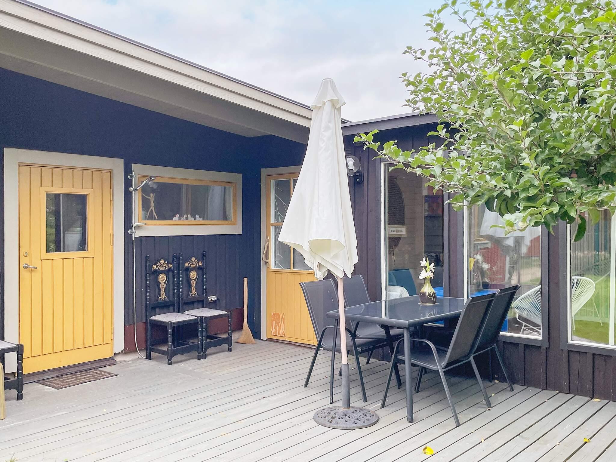 1 Außenbereich: Gartenmöbel, Liegestühle, Außenkamin, Holzkohlegrill, Terrasse, Veranda, Altan, Solgård