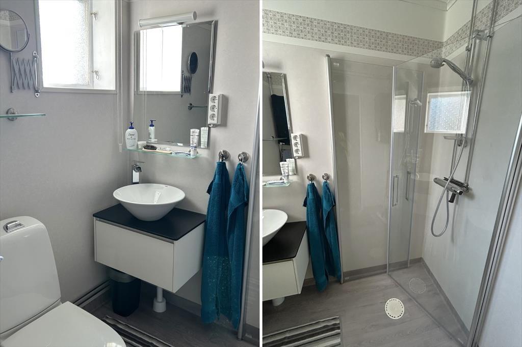 Erwärmt wird das Haus durch eine energiesparende Wärmepumpe, die du auch durch Anzünden des Kaminofens unterstützen kannst. Brennholz erhältst du beim Coop-Markt im Ort oder beim Baumarkt in Likenäs.