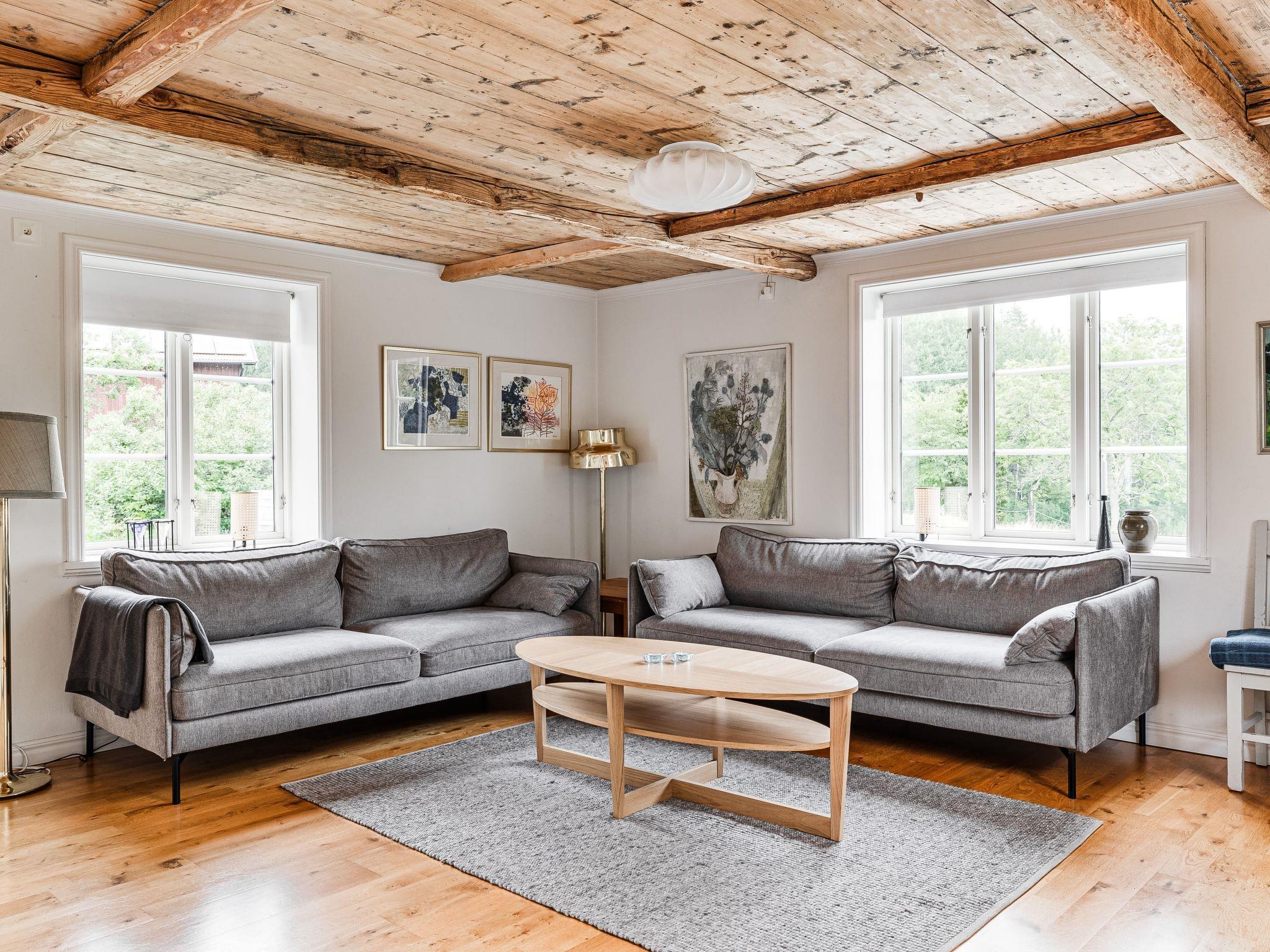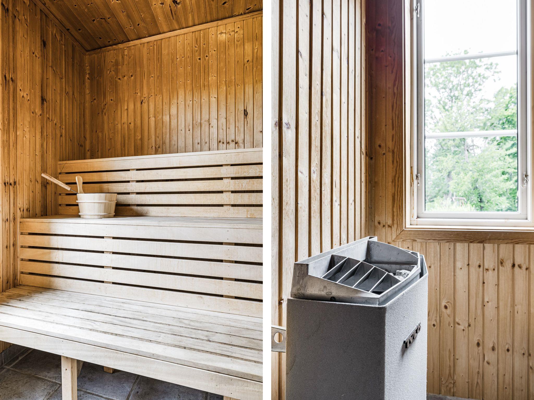 "Klinten Totebo", 5-room house 133 m2 on 2 levels. Cosy furnishings: living/dining room with dining table, satellite TV, CD-player, DVD and tiled stove. Exit to the veranda. 1 room with 2 beds and Scandinavian wood stove (only for decoration). Exit to the garden. Open kitchen (oven, dishwasher, 4 ceramic glass hob hotplates, toaster, kettle, microwave, freezer, grill, electric coffee machine). Exit to the veranda. Shower/WC, sep. WC, Sauna. Electric heating, underfloor heating. Heating not available in all rooms. Upper floor: 2 rooms, each room with 2 beds. Living/sleeping room with 2 beds. Sep. WC. Wooden floors. Terrace, patio. Terrace furniture, barbecue (portable). View of the lake. Facilities: washing machine, children's high chair, baby cot. Internet (WiFi, free). Please note: one double bedroom is outside the apartment. Non-smoking house. Freezer approx. 150 l. When there are less than the maximum number of guests staying at the property, the annex will not be available for use.