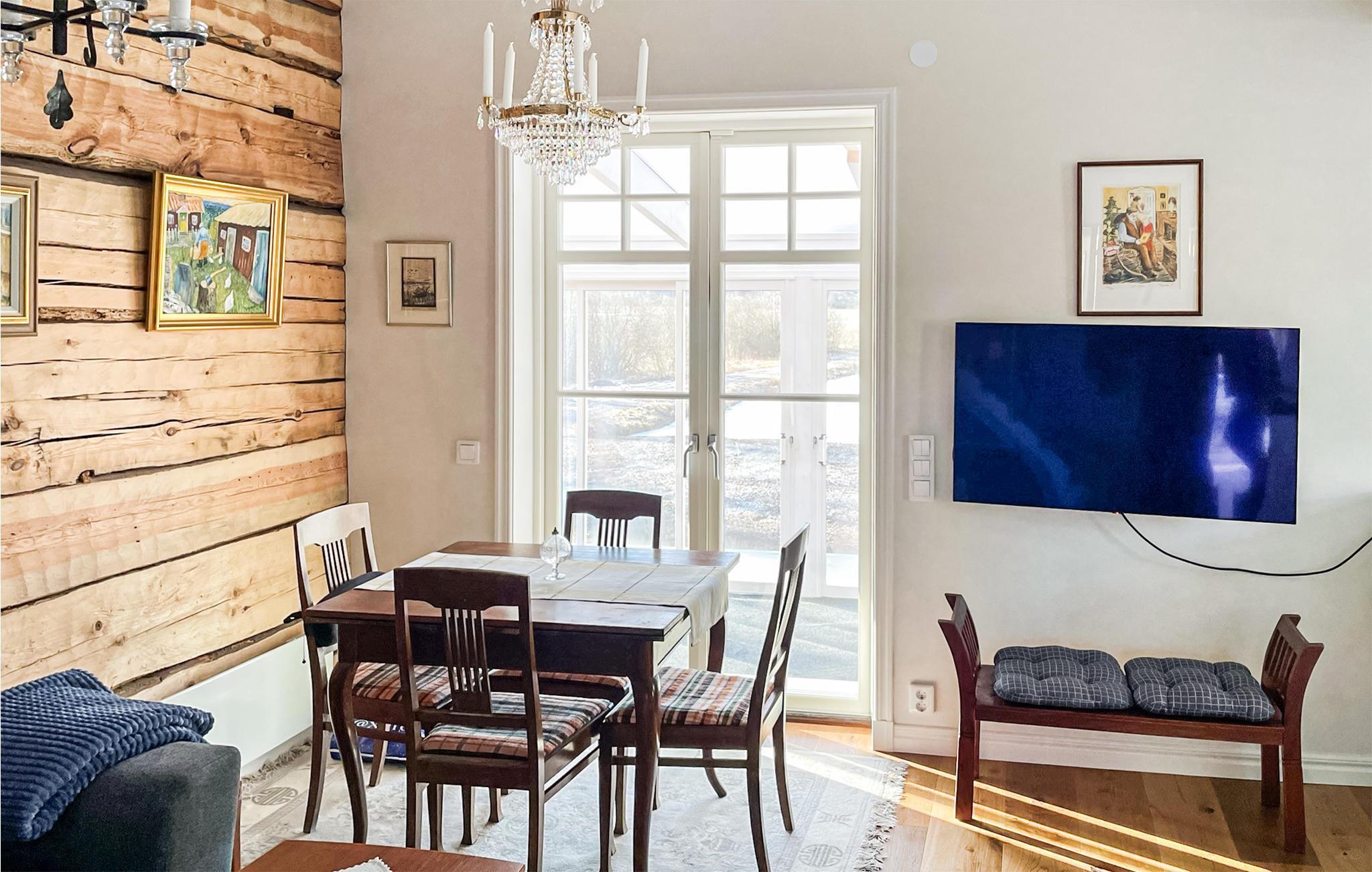 Dieses authentische schwedische Holzhaus bietet Ihnen ein auffallendes Interieur, in dem Sie sich auf jeden Fall wohlfühlen werden. Diese Unterkunft ist bestens ausgestattet mit allem, was Sie für einen Traumurlaub in einer ungestörten Gegend benötigen könnten. Der ganze Wohnraum hat naturbelassene Dekorationselemente, aber auch eine spannende Mischung aus modernem skandinavischem Design und antiquarischem Stil. Stellen Sie sich vor in diesem Wintergarten Ihren morgendlichen Kaffee mit einem Ausblick auf die Landschaft und den wärmenden Sonnenstrahlen auf Ihrem Körper zu beginnen. Das ganze Haus sprüht vor Lebensenergie und harmonischen Designstrukturen, welche dem Innenraum eine sehr eigene heimelige Atmosphäre verleihen.