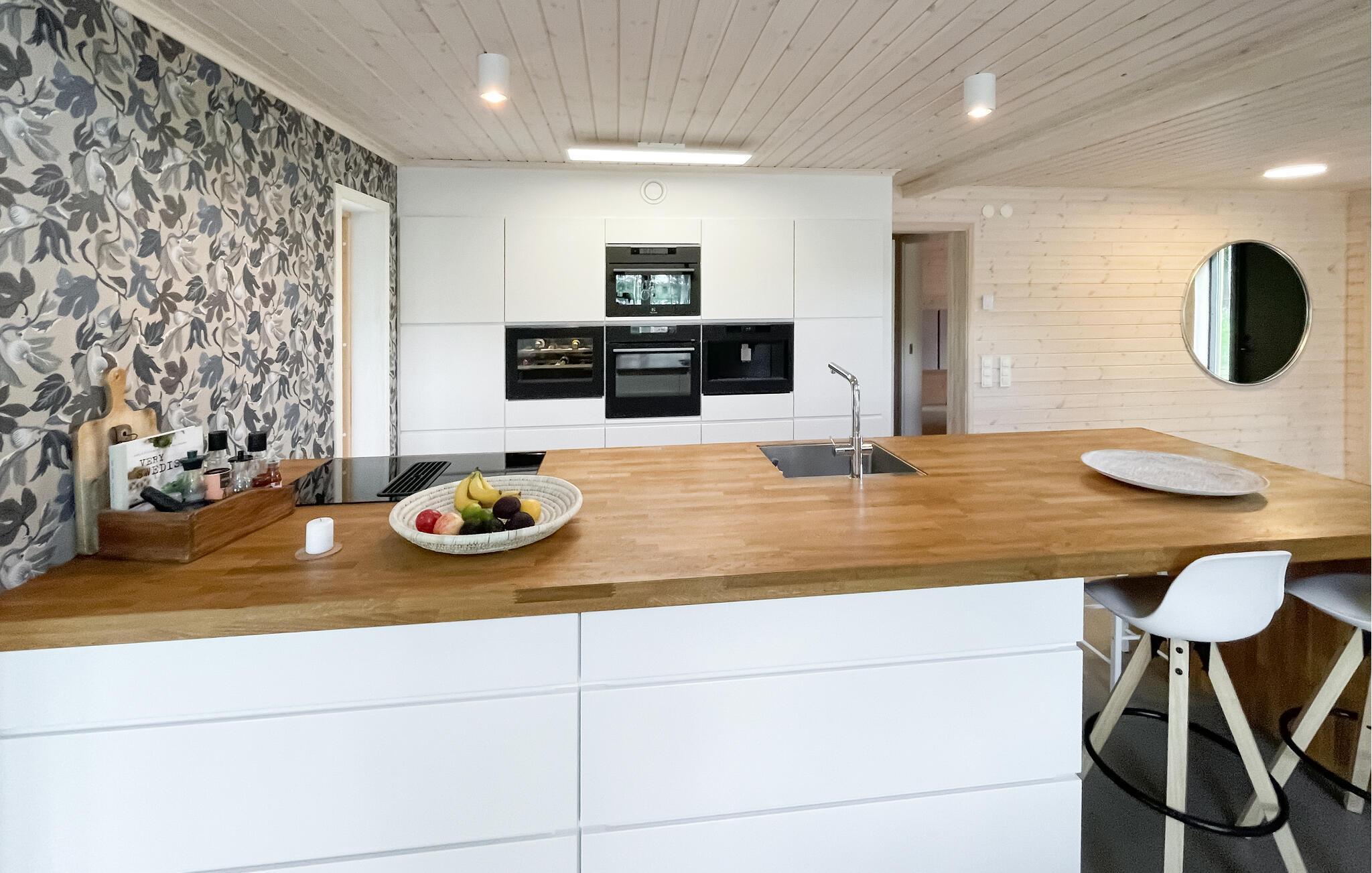 Die hochwertige und geschmackvolle Einrichtung verleiht dem einladenden Haus, das seine Gäste am Lagmanshagasjön erwartet, seinen besonderen Charme. Entspannen Sie hier mit Ihren Lieben und schaffen Sie bleibende Erinnerungen. Genießen Sie die gemeinsamen Mahlzeiten mit wunderbarer Aussicht und lassen Sie nach einem Saunagang an gemütlichen Abenden auf bequemen Sofas den Blick über den See schweifen.
