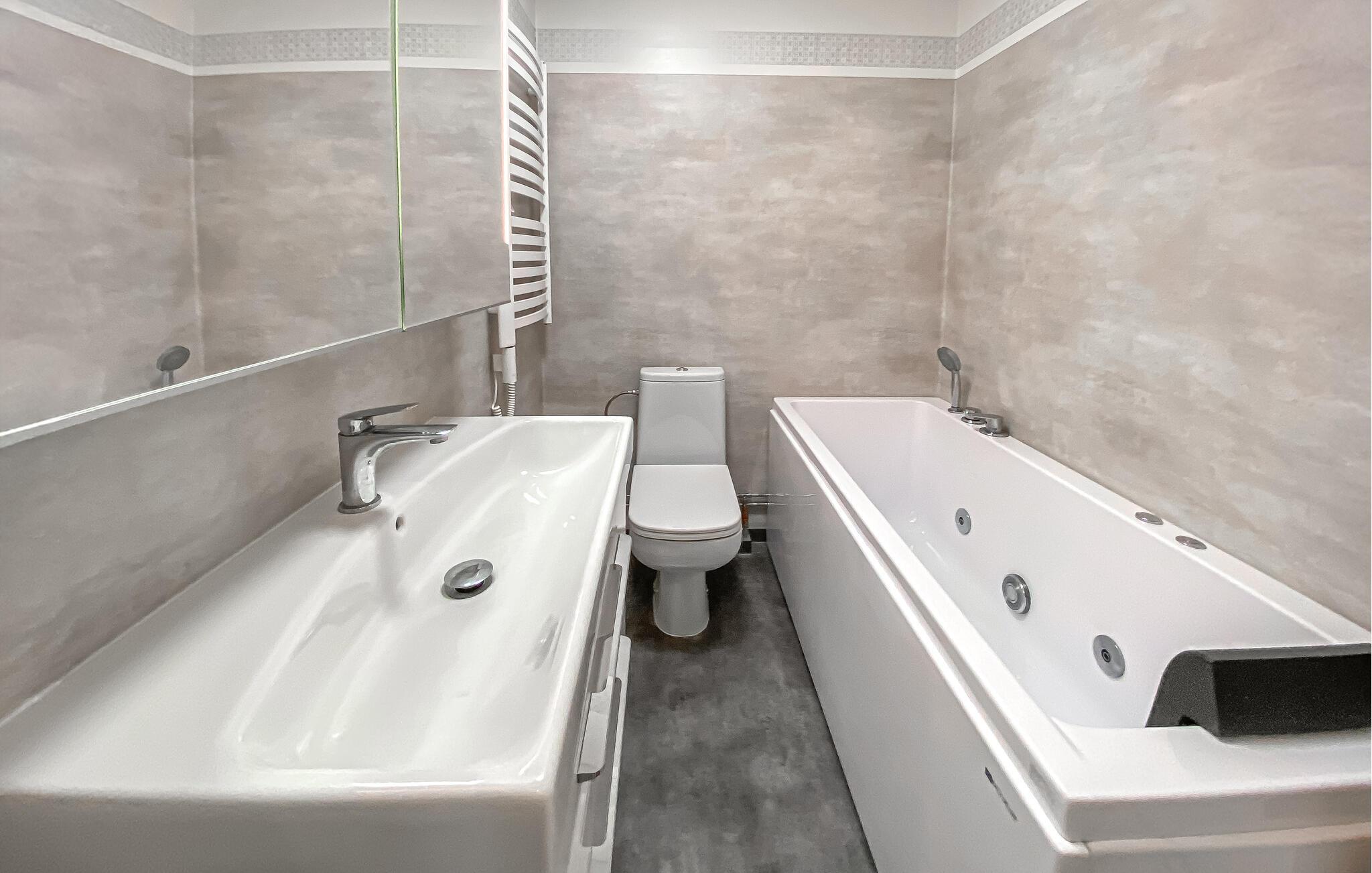 Badezimmer (nr. 1) - WC. Warmes und kaltes Wasser. Handdusche und Badewanne