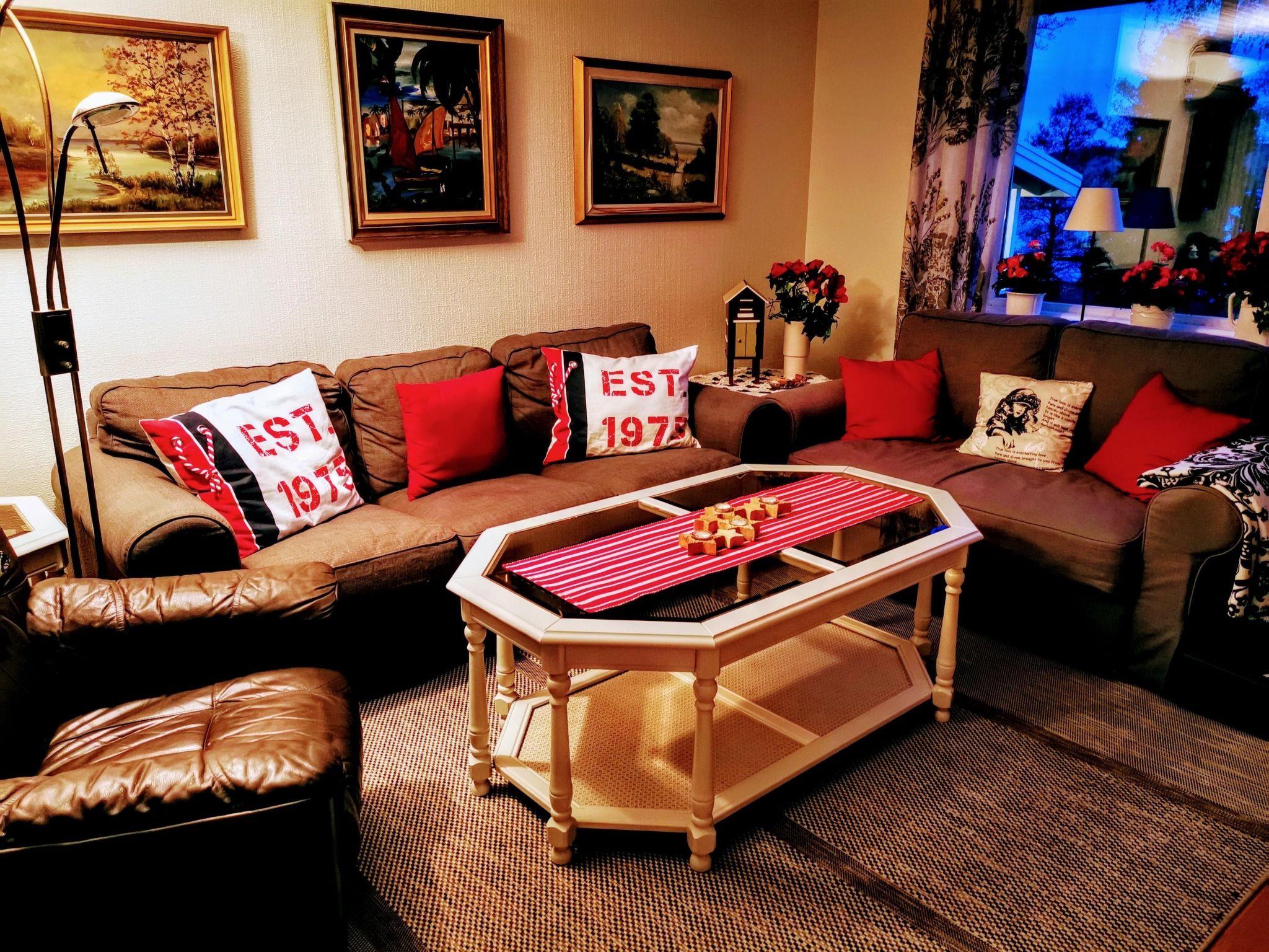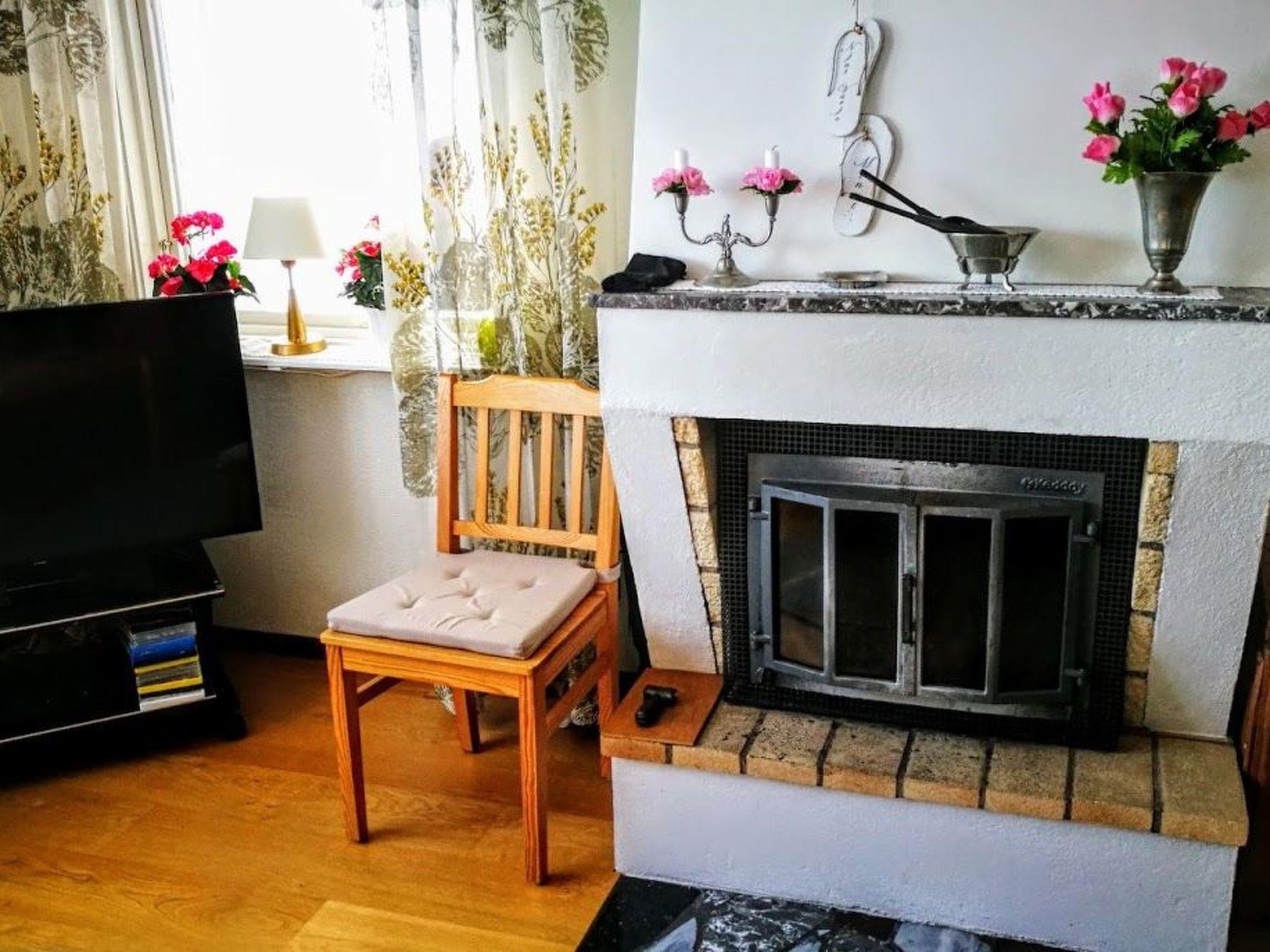 The house is 85 m² and consists of: a living room with fireplace. Newly installed (2019) air source heat pump for both heating and cooling. Flat screen TV with games console (PS3) and music system (via mobile phone). There is a 3-seater sofa, a 2-seater sofa bed, a table and an armchair. Adjacent to the living room is a new (2019) fully equipped kitchen with induction hob, oven, fridge/freezer, microwave, coffee maker, kettle, SodaStream, and a dining table with seating for 6 people. An adjoining bathroom with toilet, shower and sink. A large bedroom with new (2023) double bed and wardrobes. A smaller bedroom with 2 new (2023) single beds and a wardrobe. Adjacent to the entrance of the house you enter a glazed patio with a sofa, table and relaxing chairs.