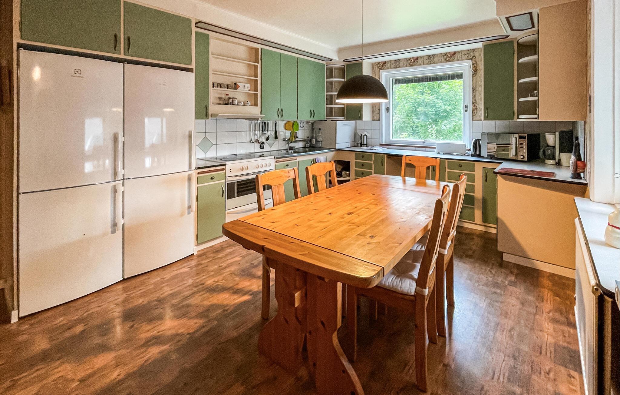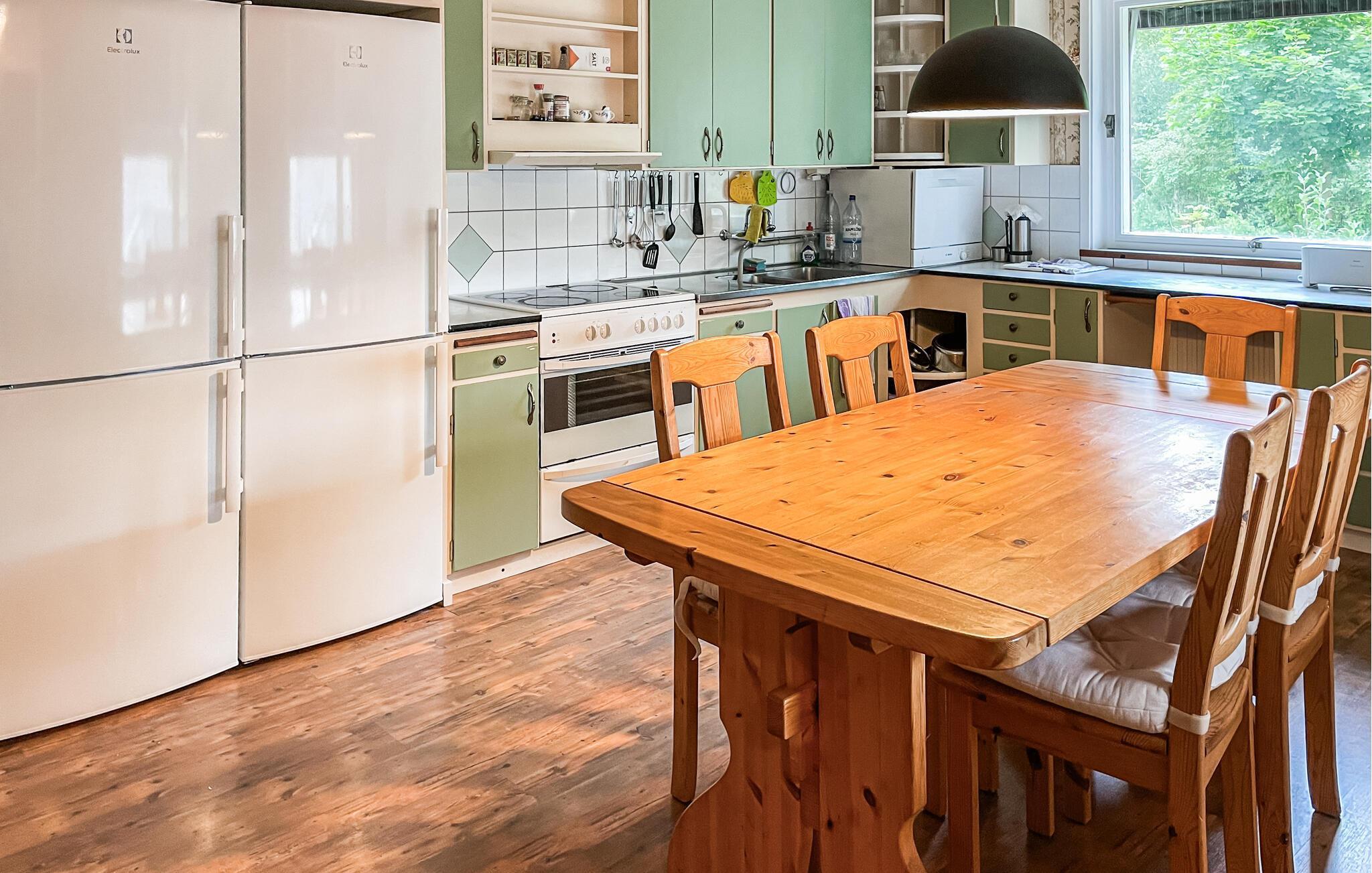 Ihr Ferienhaus, nur wenige Kilometer von Varberg entfernt, bietet Ihnen eine behagliche Atmosphäre und reichlich Platz für entspannte Stunden. Machen Sie es sich im gemütlichen Wohnzimmer bequem, wo die traditionelle Einrichtung für eine behagliche Atmosphäre sorgt. Genießen Sie gemeinsame Abende mit Ihrer Familie und lassen Sie den Tag bei einem guten Gespräch oder einem lustigen Gesellschaftsspiel ausklingen. Die geräumige Essküche lädt dazu ein, Ihre Lieblingsgerichte zu zaubern und am schönen Holzesstisch zu servieren.