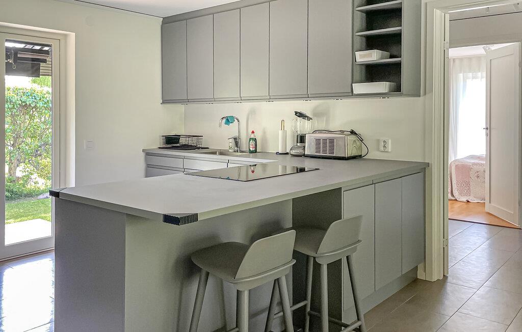 Willkommen in diesem hellen und großzügigen Ferienhaus, das Sie mit einer tollen Lage direkt am Meer und in der Nähe gepflegter Golfplätze zu einer entspannten Auszeit in seinen stilvoll eingerichteten Räumlichkeiten einlädt. Zaubern Sie kulinarische Highlights in der offenen Küche, planen Sie Ihre Unternehmungen am behaglich beleuchteten Esstisch und lauschen Sie bei einem Glas Wein im einladenden Wohnzimmer dem Knistern des norwegischen Kaminofens.