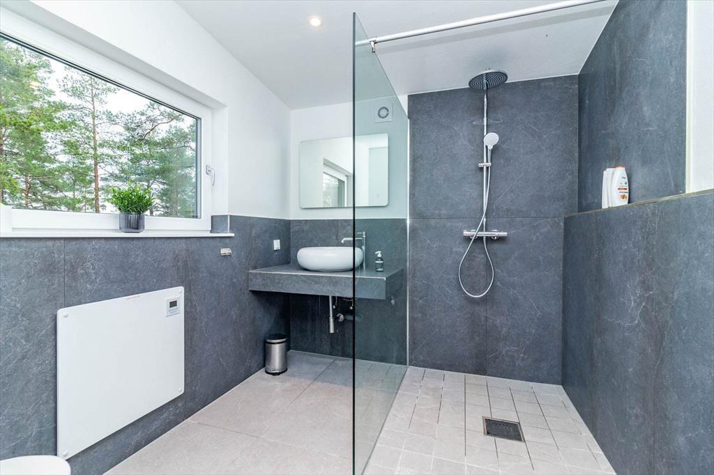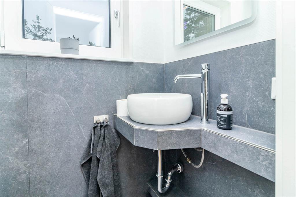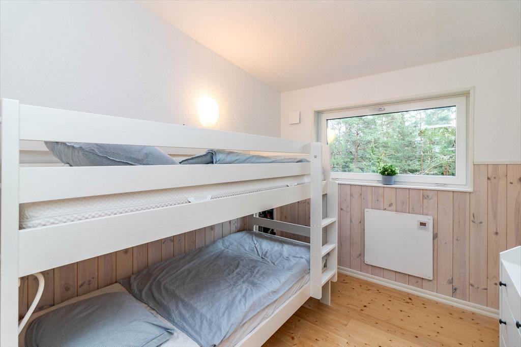 Die Wohnfläche des Ferienhauses beträgt ca. 100 m². Dazu gibt es ein kleines Gästehaus mit einer Größe von ca. 20 m². Insgesamt ist das Objekt für maximal 7 Personen geeignet. Über die Terrasse betrittst du das Haus und du befindest dich direkt in einem kleinen, offenen Flur mit Garderobe. Zur linken Seite liegt das Badezimmer mit WC und Dusche. Aus dem kleinen Flur heraus befindest du dich direkt im offenen und lichtdurchfluteten Küchen-, Ess- und Wohnbereich. Die offene Küche mit großer Kochinsel und Induktionsherd ist gut ausgestattet und lässt keine Wünsche offen. An die Küche schließt der Essbereich mit großen Esstisch, Stühlen und Sitzbank an. Dahinter liegt der Wohnbereich mit einem gemütlichen Ecksofa, einem Kamin und einen TV mit Firestick. Vom gesamten Raum aus hat man einen Blick nach draußen und Zugang zur Terrasse. Seitlich liegen die drei Schlafzimmer. Das erste Schlafzimmer ist mit einem Doppelbett eingerichtet, das zweite Schlafzimmer mit einem Einzelbett und das dritte Schlafzimmer mit einem Etagenbett.