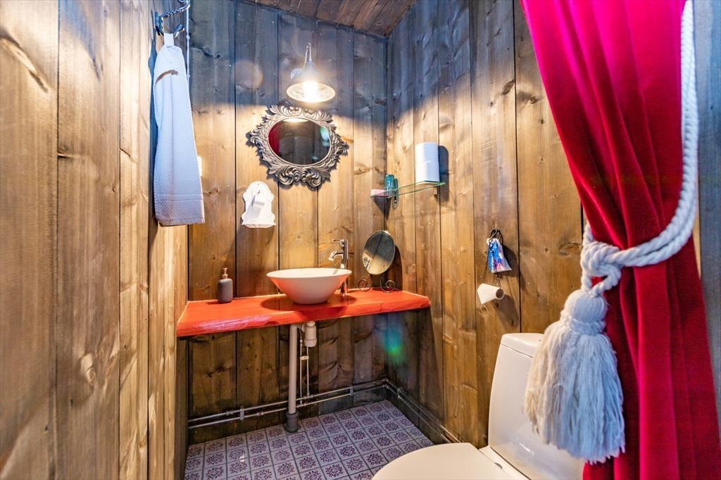 Udendørs venter en stor terrasse med havemøbler og en træfyret badetønde – perfekt til hyggelige aftener under åben himmel. En robåd er inkluderet i lejen, og du kan efter ønske leje kano, motorer eller sauna. Parkering findes ved huset.