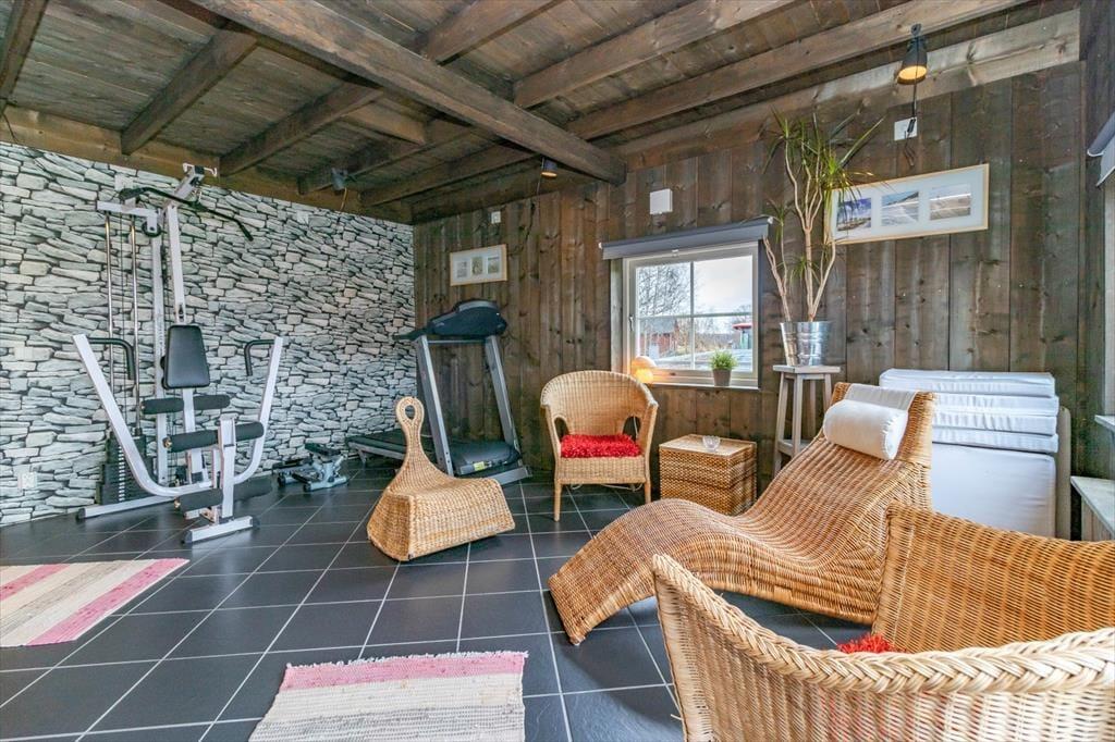 I opholdsrummet kan du slappe af i sofaen, se tv med tyske kanaler eller spille på Xbox. Der er hurtigt fiberinternet, så du også kan være online på ferien. Fra opholdsrummet har du adgang til et lille fitnessrum, hvorfra du også når toilet og bruser.