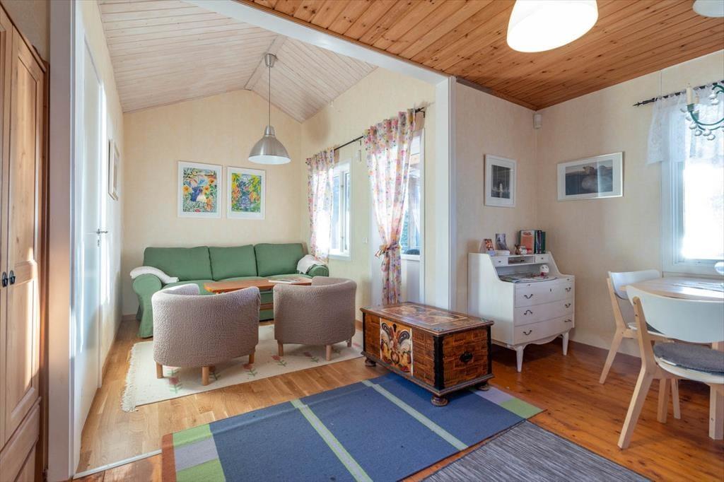 Det enkle feriehus byder på 50 m² og plads til op til 4 personer. I den åbne stue- og soveafdeling indbyder en stor kamin (brænde inkluderet) og et spiseområde til hyggelige stunder. En sovesofa giver to sovepladser, og i det separate soveværelse findes en køjeseng.