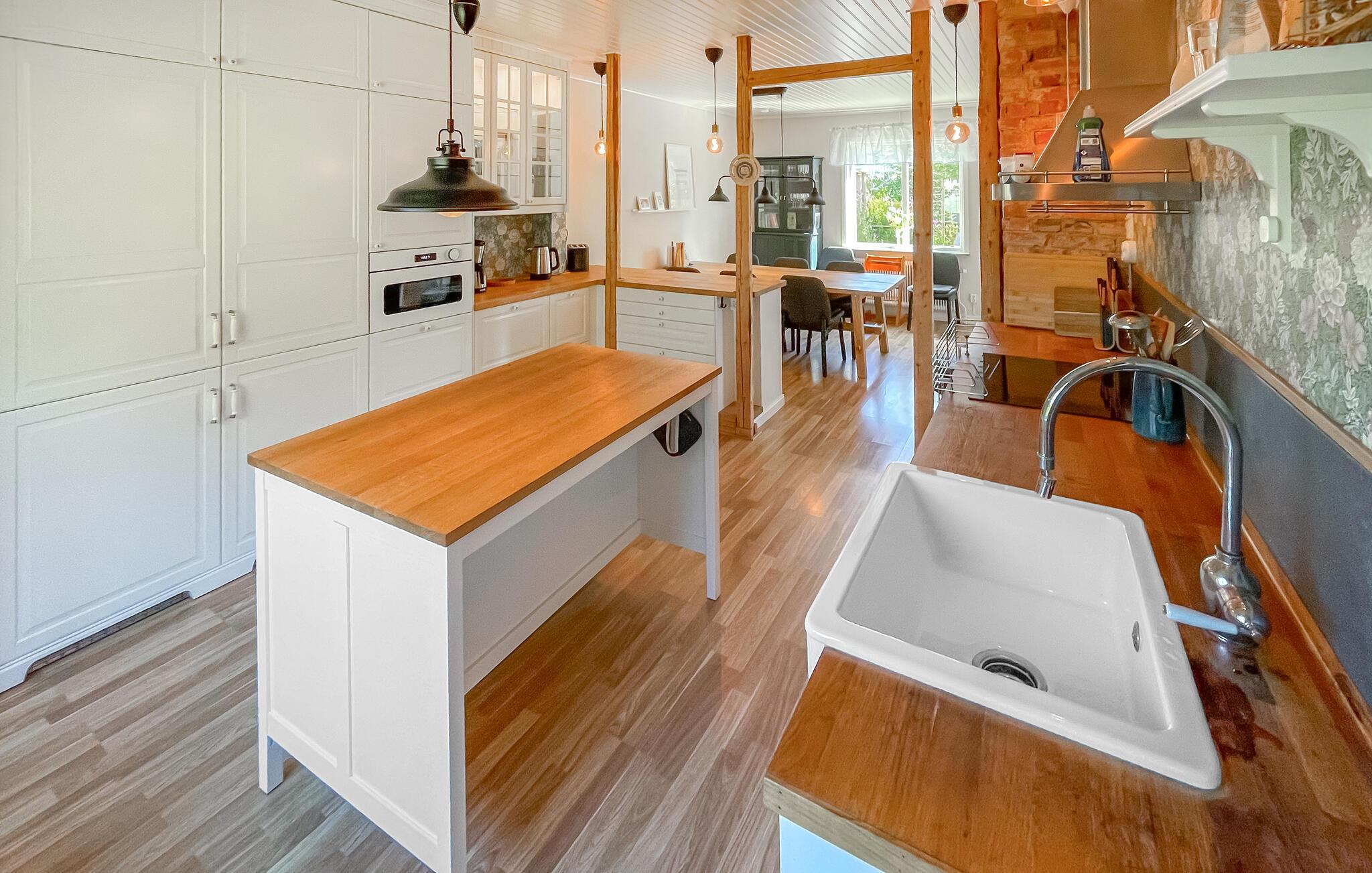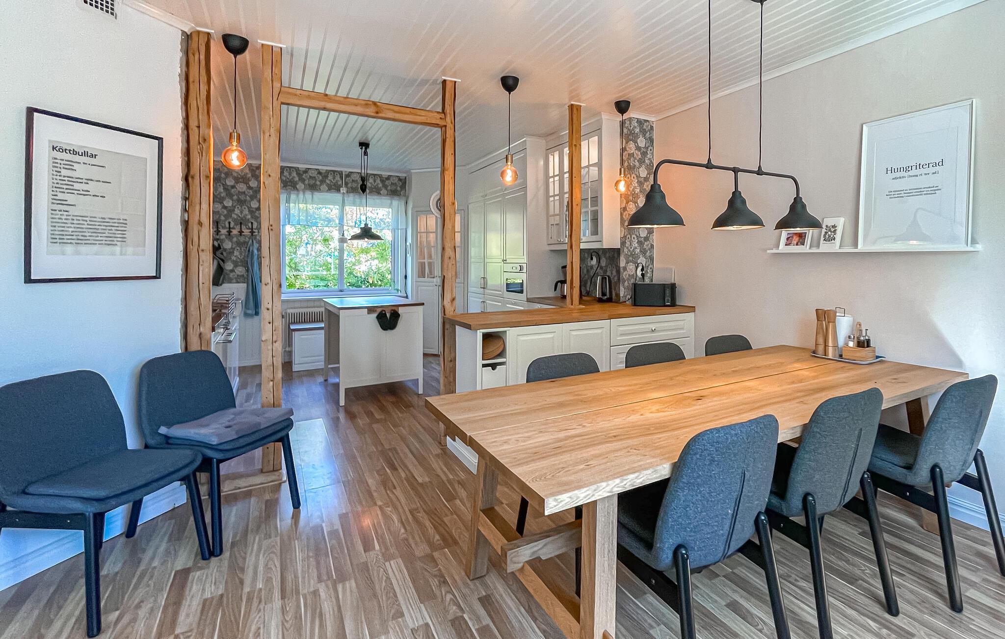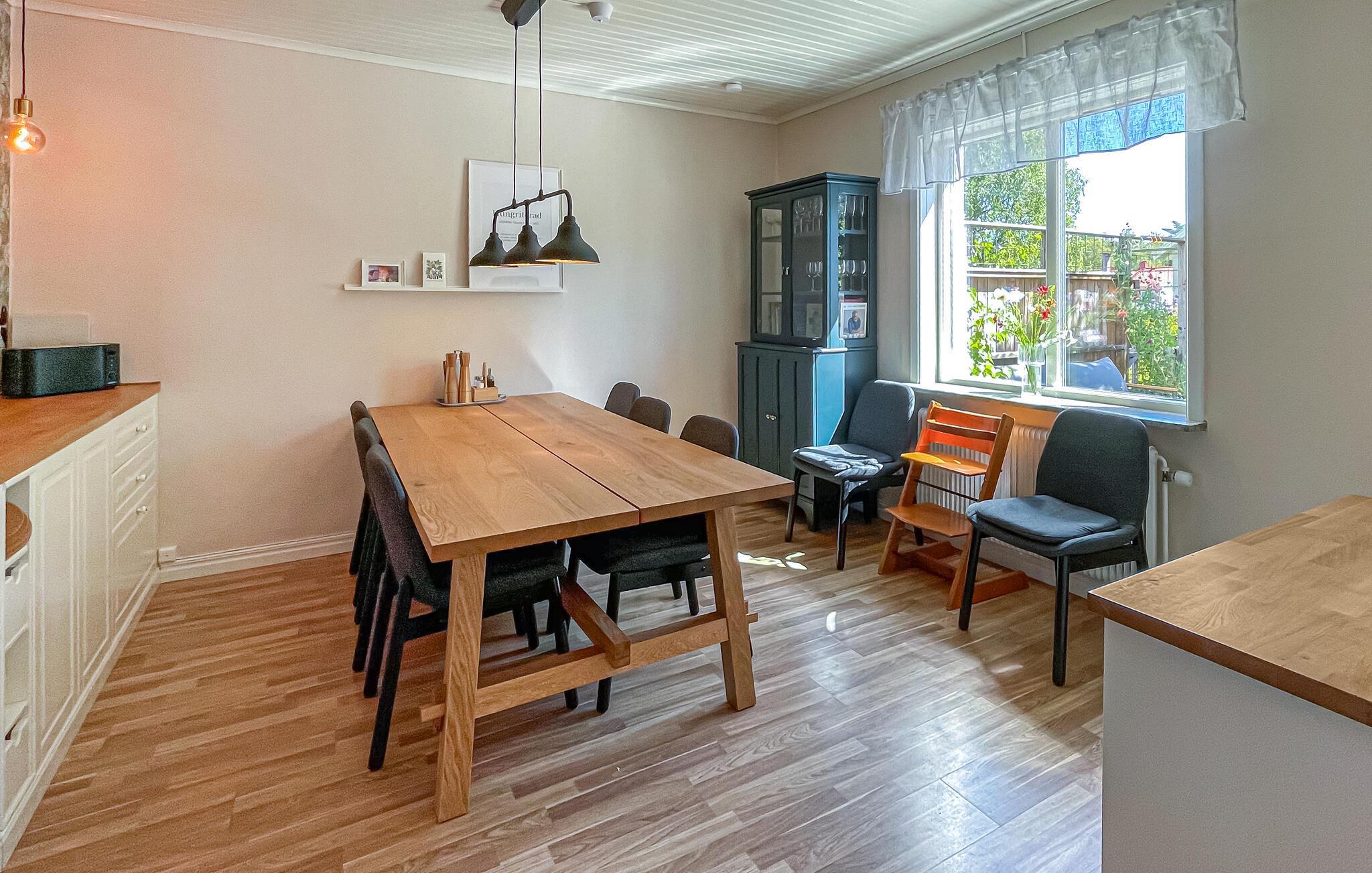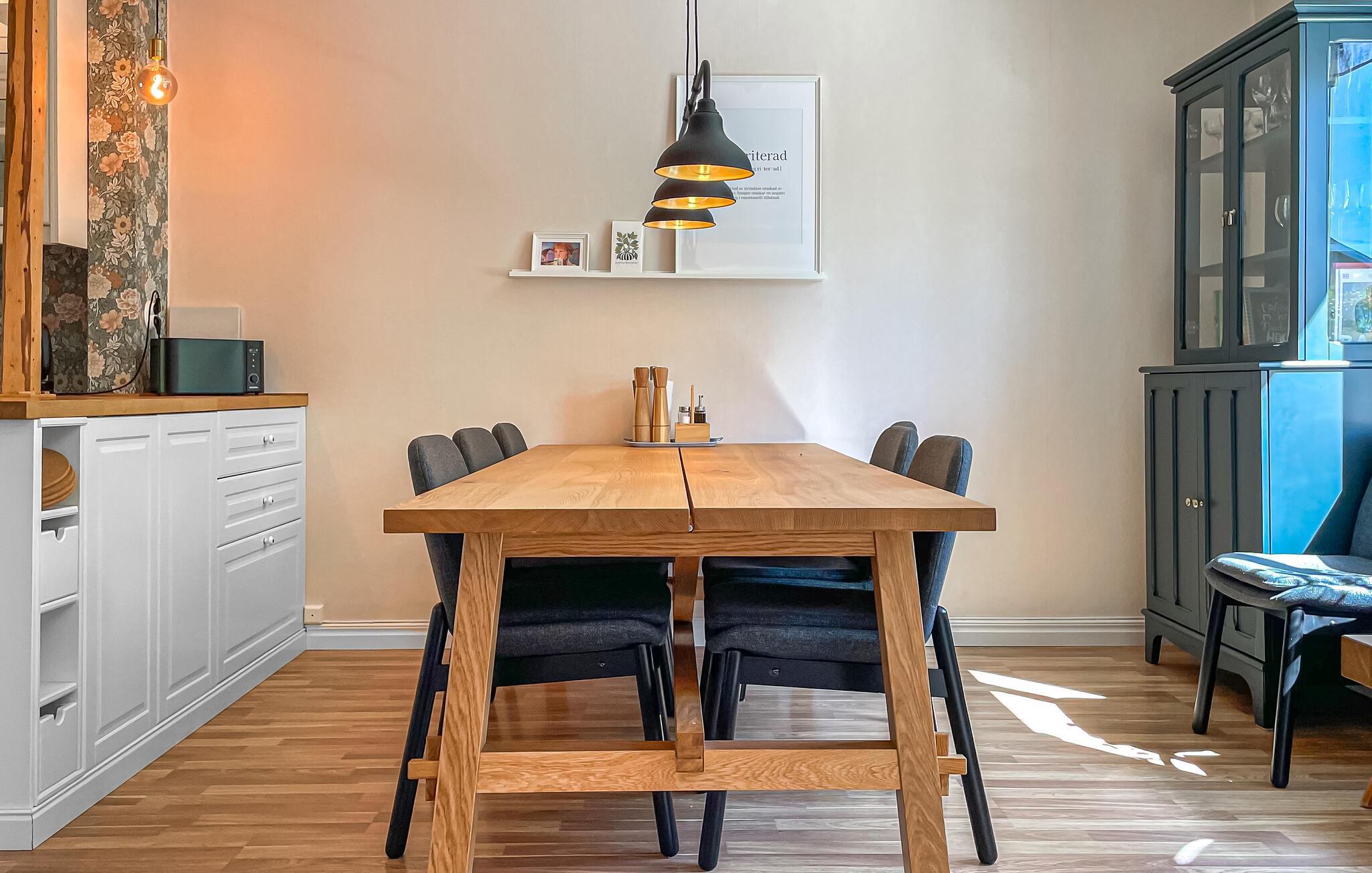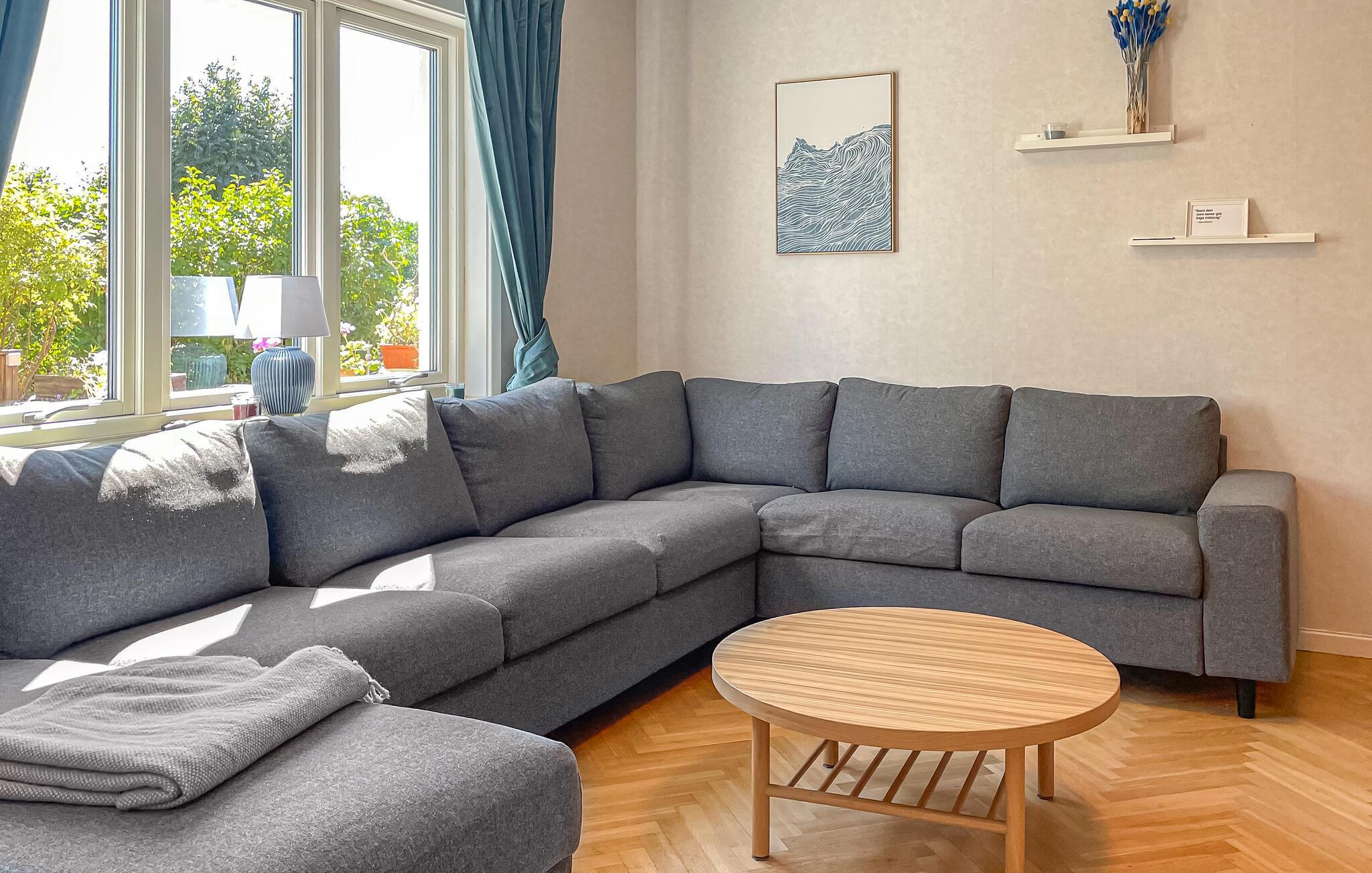 Dieses großzügige Ferienhaus begrüßt Sie mit einer hellen und freundlichen Atmosphäre und bietet viel Platz für einen entspannten Urlaub mit Freunden oder der Familie. Genießen Sie harmonische Mahlzeiten im behaglichen Essbereich, veranstalten Sie fröhliche Spieleabende oder streamen Sie einen Film auf dem einladenden Sofa. Wer Ruhe sucht, findet einladende Rückzugsorte zum Lesen und Entspannen.