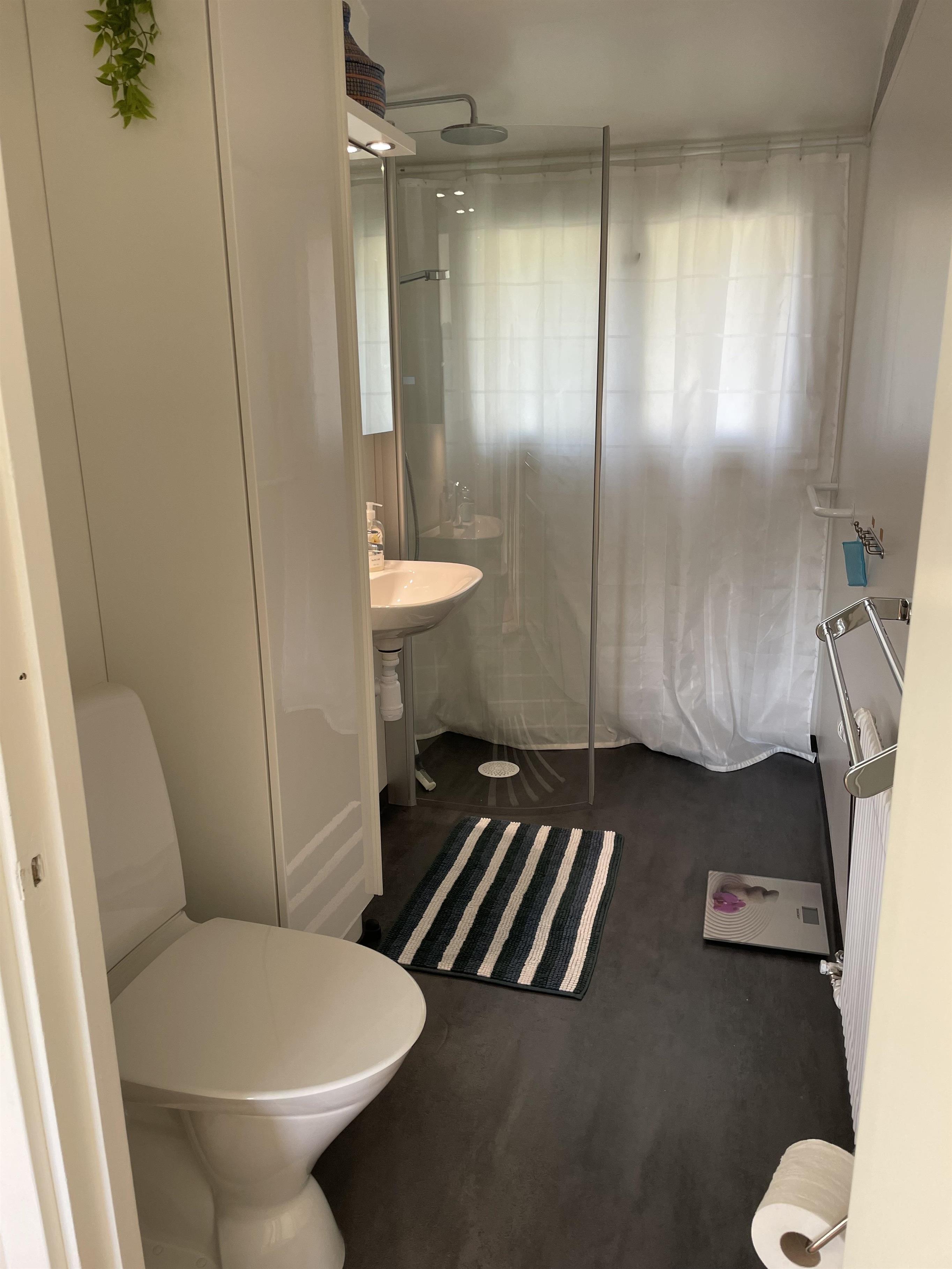 Das Haus hat 3 Etagen. Im Obergeschoss befinden sich 2 Schlafzimmer mit einem 180 cm breiten Bett und einem 140 cm breiten Bett, Bad verfügt über WC und Dusche, und es gibt eine Sofaecke mit TV.