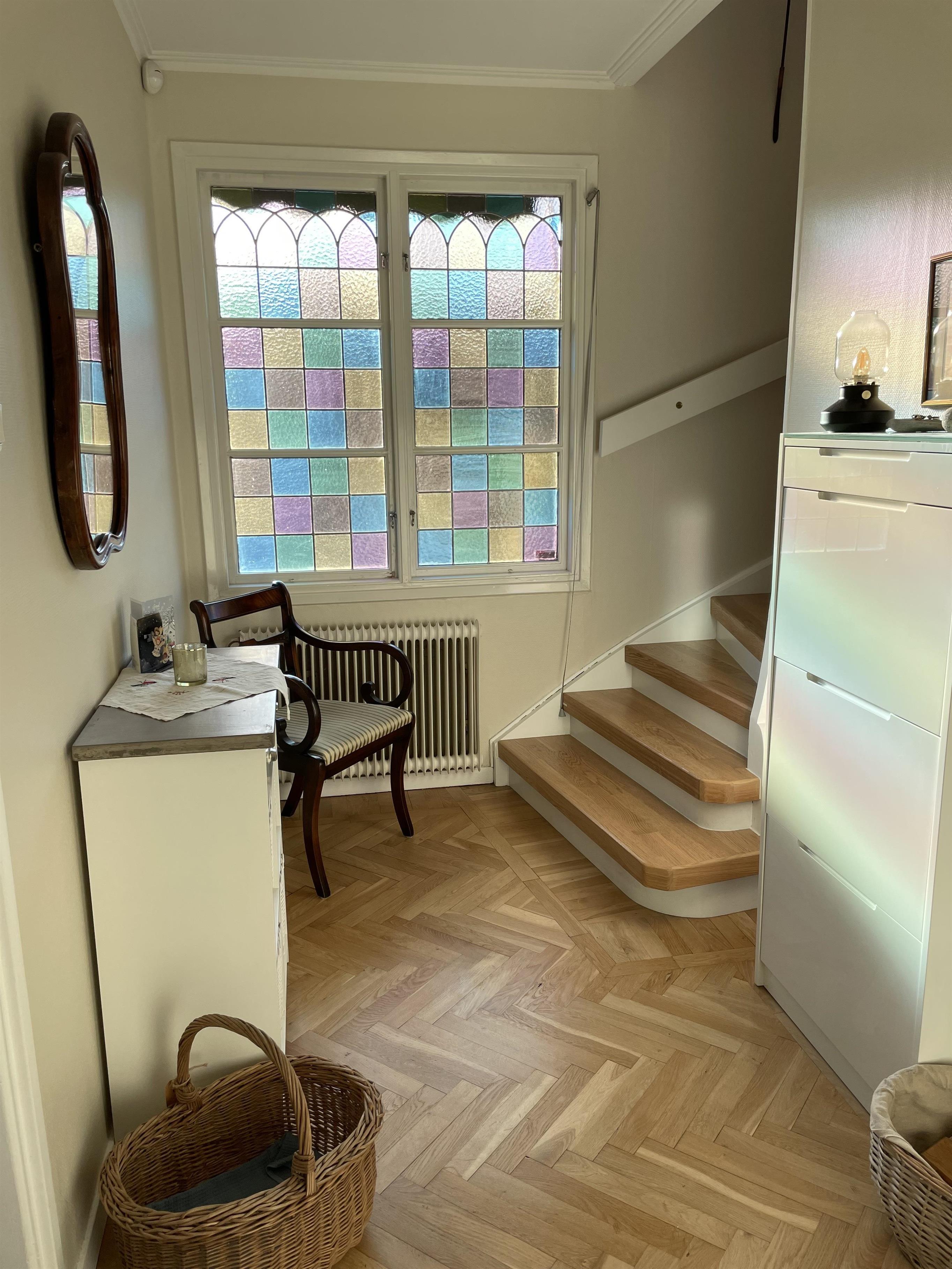 Das Haus hat viel Licht, Parkettböden, helle Farben und viel Platz.