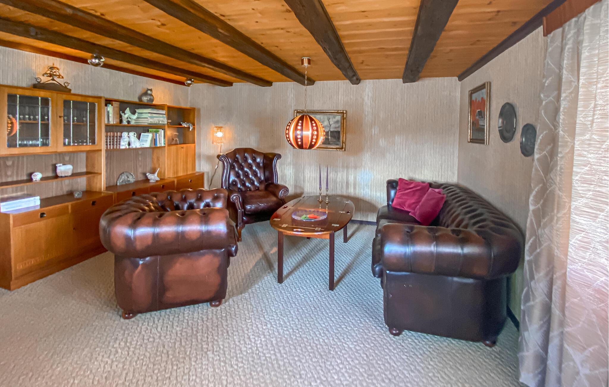 Dieses rustikal eingerichtete Haus mit den fröhlichen Farbtupfern ist wie geschaffen für eine vergnügte Auszeit vom Alltag. Ein schweres Ledersofa lädt am Abend zum gemütlichen Verweilen bei einem Glas Wein ein, während sich die Sitzgruppe mit dem floralem Muster ausgezeichnet für eine Kaffeepause eignet. Egal ob Sie Plaudern oder gemeinsam kochen – hier bestimmen Sie den Rhythmus Ihres Tages.