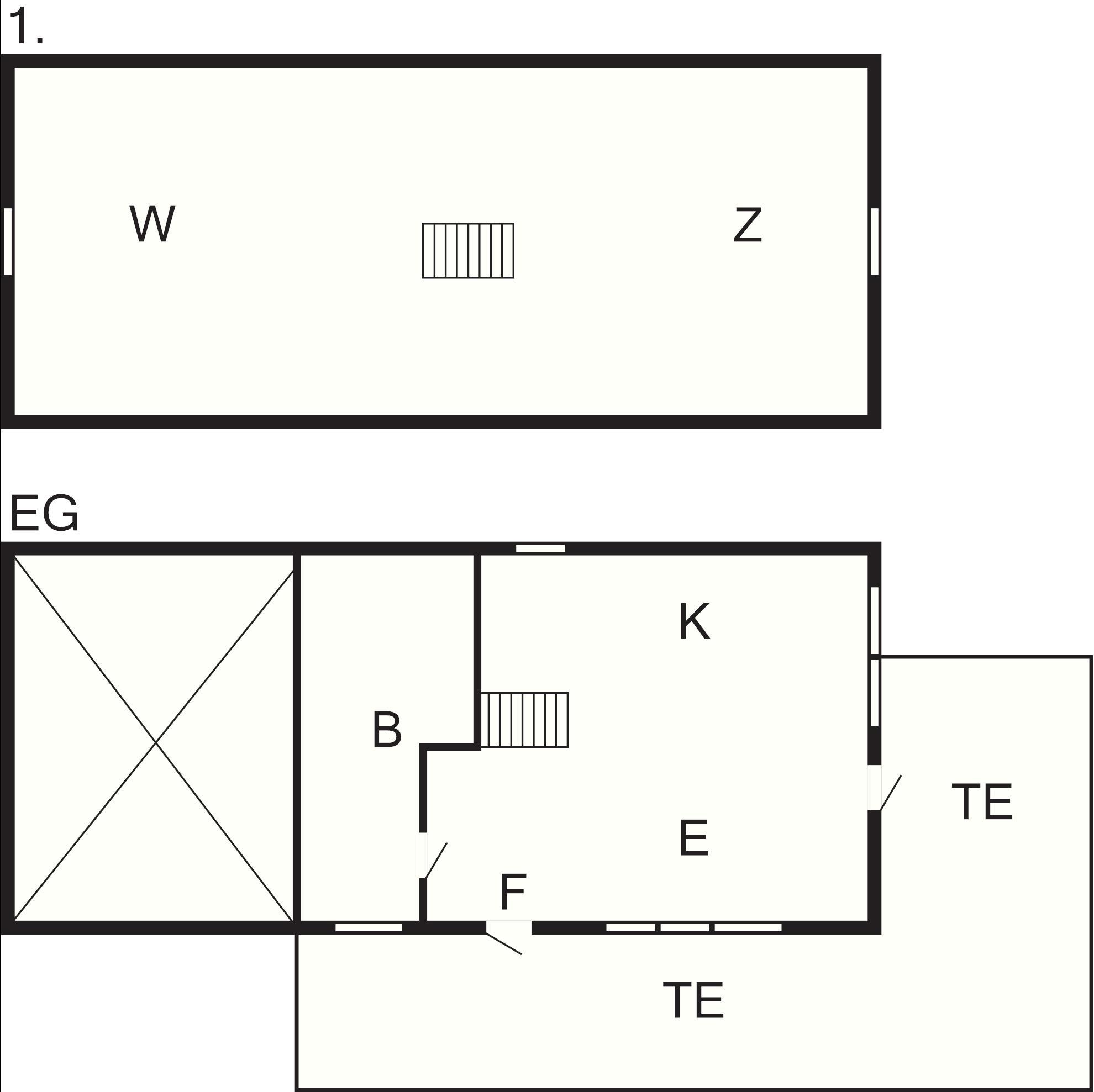 Im Parterre des Ferienhauses erwartet Sie ein moderner Küchen-/Essbereich mit ggf. ausziehbarer Schlafcouch. Das geflieste, helle Badezimmer mit Dussche/WC hat auch angenehme Fußbodenheizung. Von der schönen, weitläufigen Holzterrasse mit mehrere Ebenen genießt man herrlichen Ausblick zur ruhigen Umgebung.