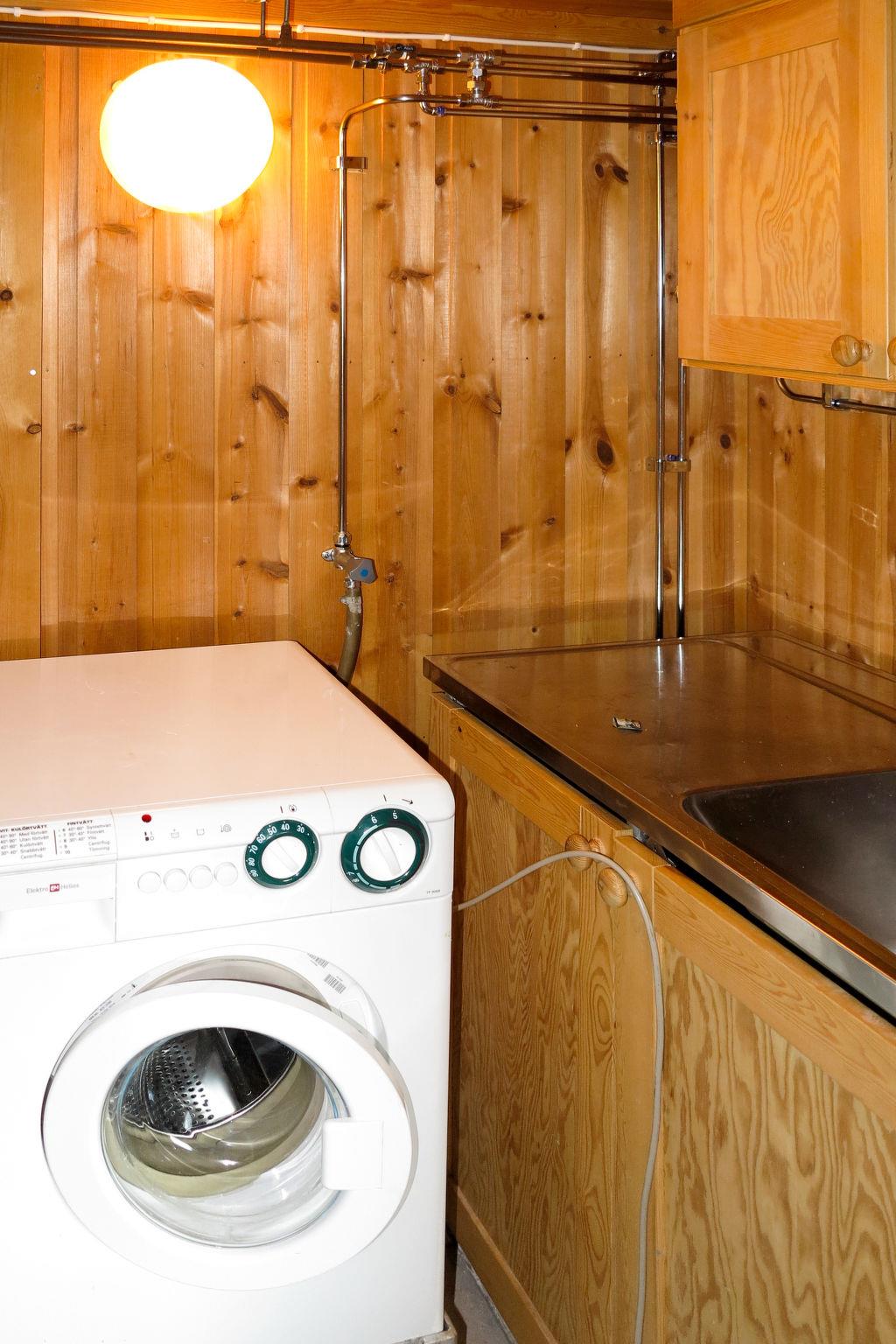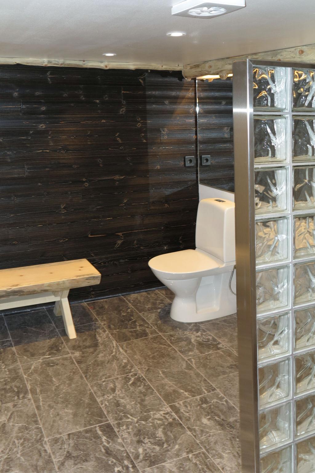 "Kvisthån Idegranen", 4-room house 100 m2 on 2 levels. Modern and cosy furnishings: living/dining room with open-hearth fireplace, dining table, satellite TV and DVD. Exit to the terrace, to the veranda. 1 room with 1 double bed. 2 rooms, each room with 1 x 2 bunk beds. Open kitchen (4 hot plates, oven, dishwasher, microwave, freezer, grill, electric coffee machine). Exit to the veranda. Shower/WC. Electric heating. On the lower ground floor: shower/WC, Sauna. Electric heating. Terrace furniture, barbecue (portable). Facilities: washing machine. Internet (WiFi, free). Please note: non-smoking house. Maximum 1 pet/ dog allowed. Freezer approx. 90 l. Wood fired sauna.