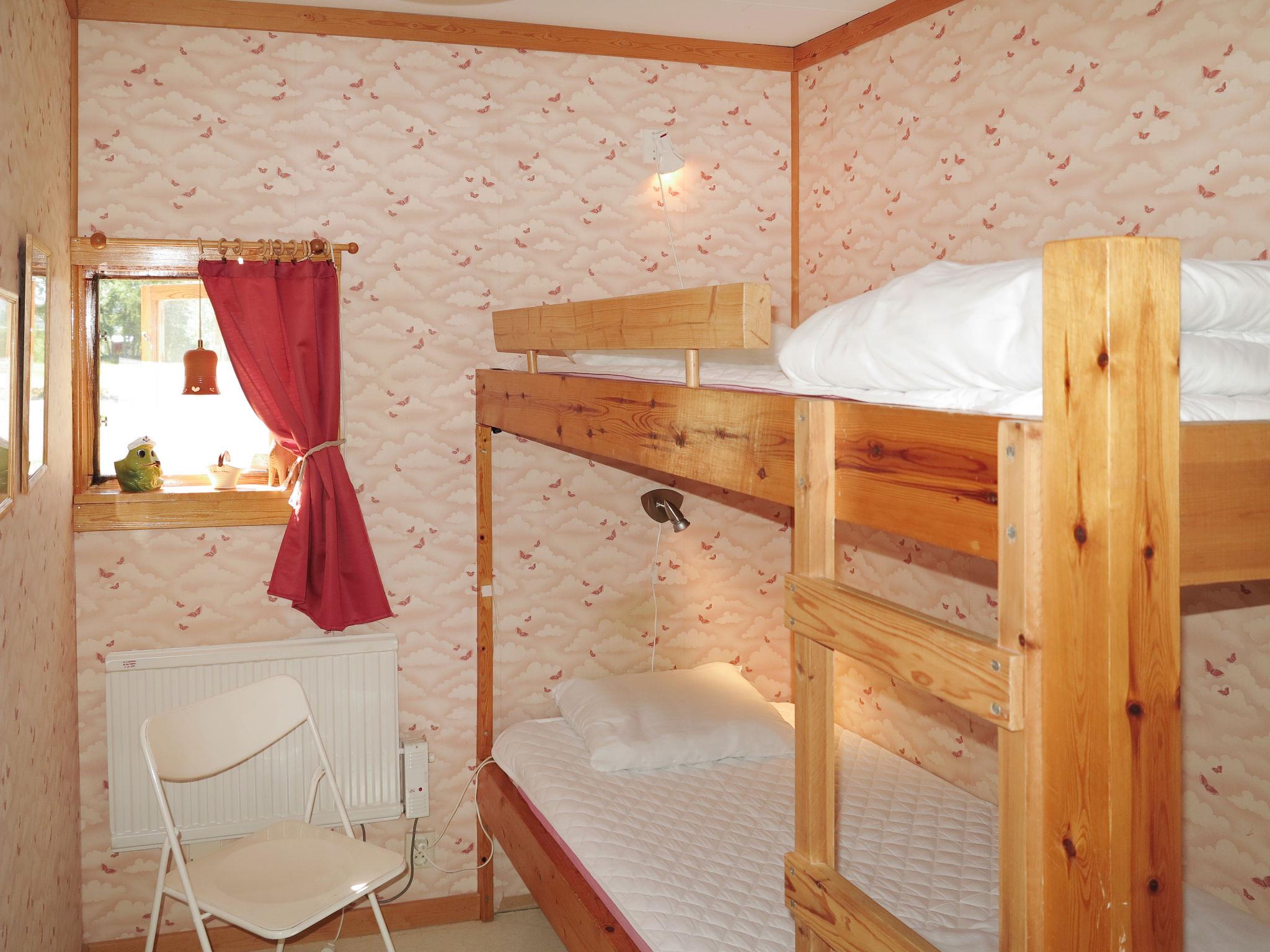 "Vemhån Östholmen", 3-room house 50 m2. Cosy furnishings: living/dining room with Scandinavian wood stove, dining table, TV and DVD. Exit to the veranda. 1 room with 1 x 2 bunk beds. 1 room with 1 x 3 bunk beds. Open kitchen (oven, 4 ceramic glass hob hotplates, microwave, freezer, electric coffee machine). Shower/WC. Electric heating. Facilities: washing machine, iron. Please note: non-smoking house. Smoke alarm, fire extinguisher. Freezer approx. 90 l. Wood fired sauna hut.